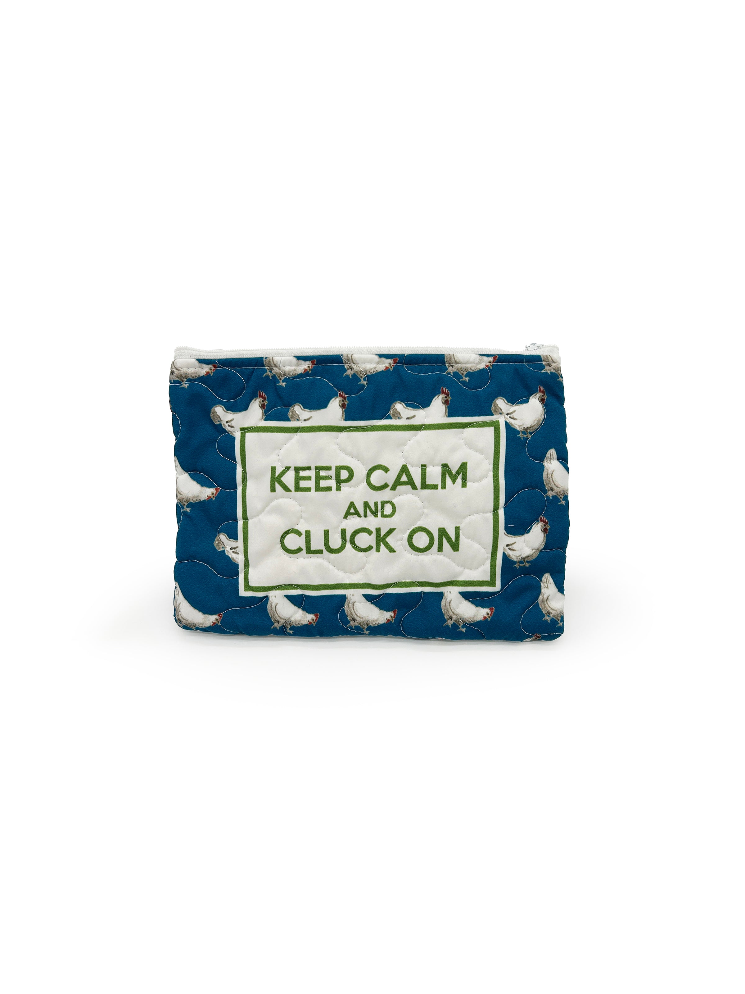 "Keep Calm and Cluck On" Peacock Quilted Makeup Bag