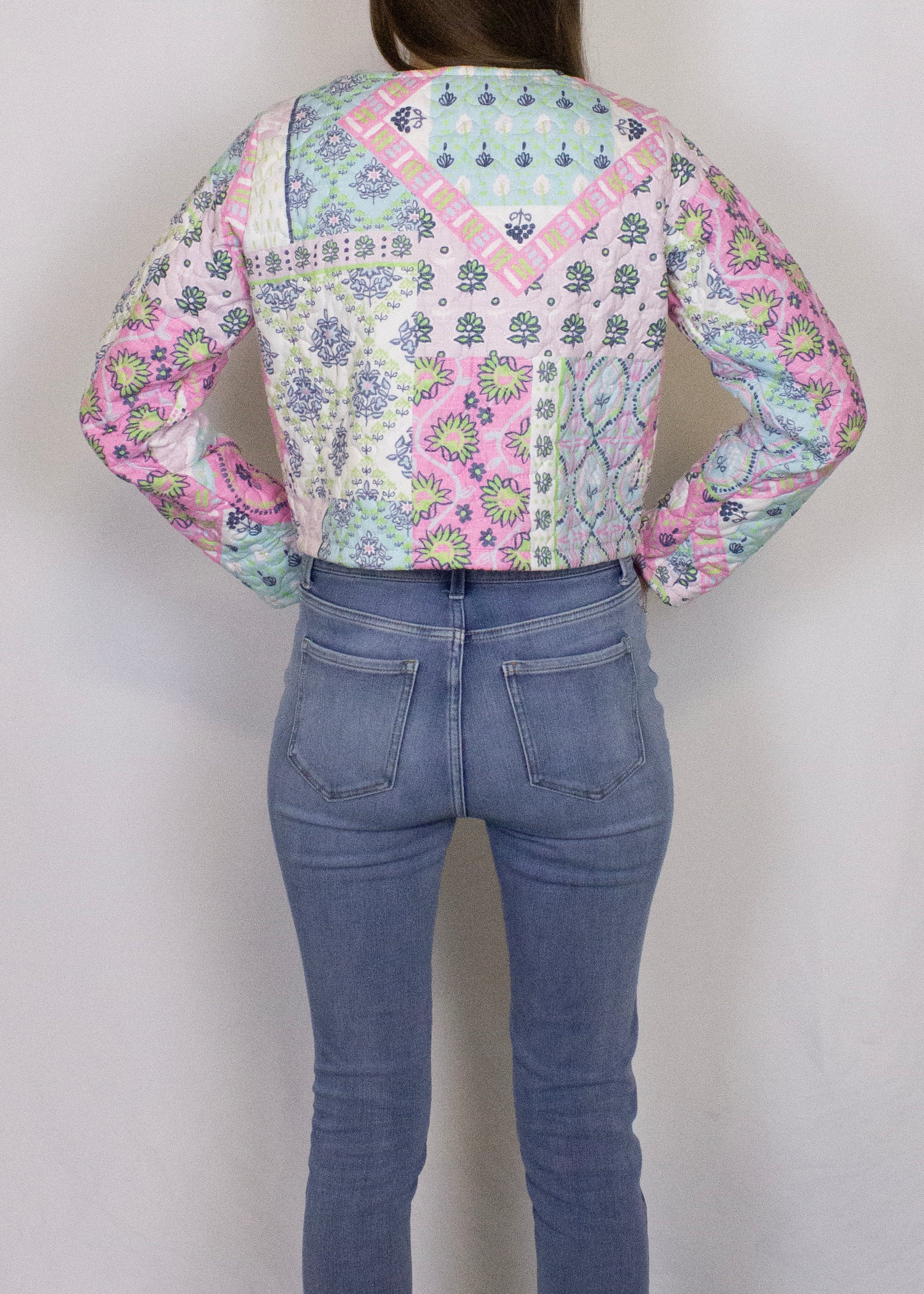Elevate your wardrobe with our Ida Mae Quilted Cropped Jackets. These jackets blend fashion and functionality seamlessly, offering a stylish layering option for any occasion. Crafted with care in Texas, each jacket is machine washable for easy maintenance and durability. Whether you're pairing it with jeans for a casual look or dressing it up for a night out, our quilted cropped jackets are a versatile and timeless addition to your closet. Shop now to experience the comfort and style of Ida Mae Home.