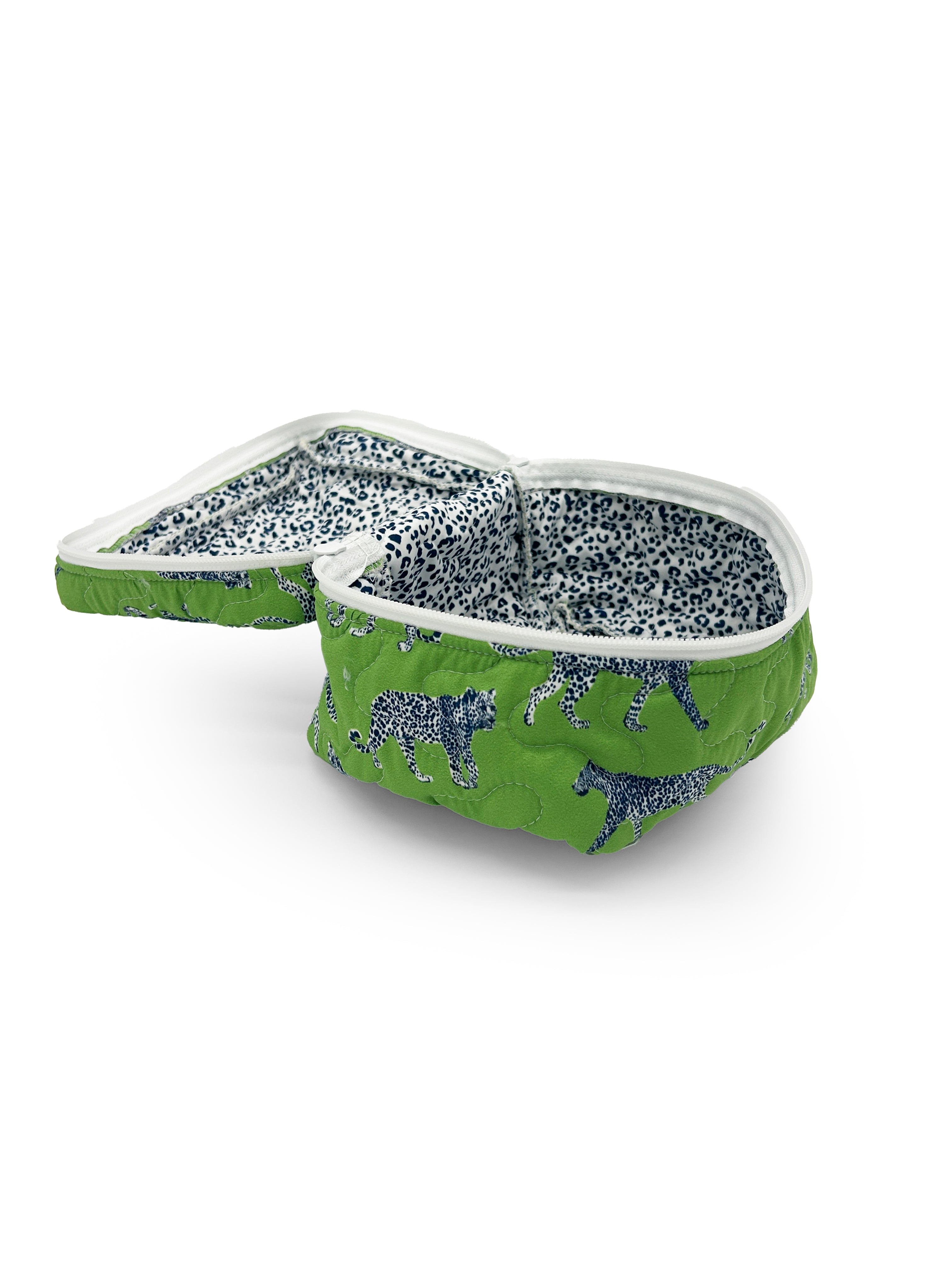 The Leilani Leopard Green Quilted Travel Case is functionally and thoughtfully designed to keep your essentials organized on the go. This travel bag has a soft quilted exterior, a secure zip closure, and a convenient top handle, it’s ideal for storing makeup, toiletries, tech accessories, or anything you need within easy reach. Machine washable, too, so you don’t have to fuss none, just a little care, and it’ll last you for years.