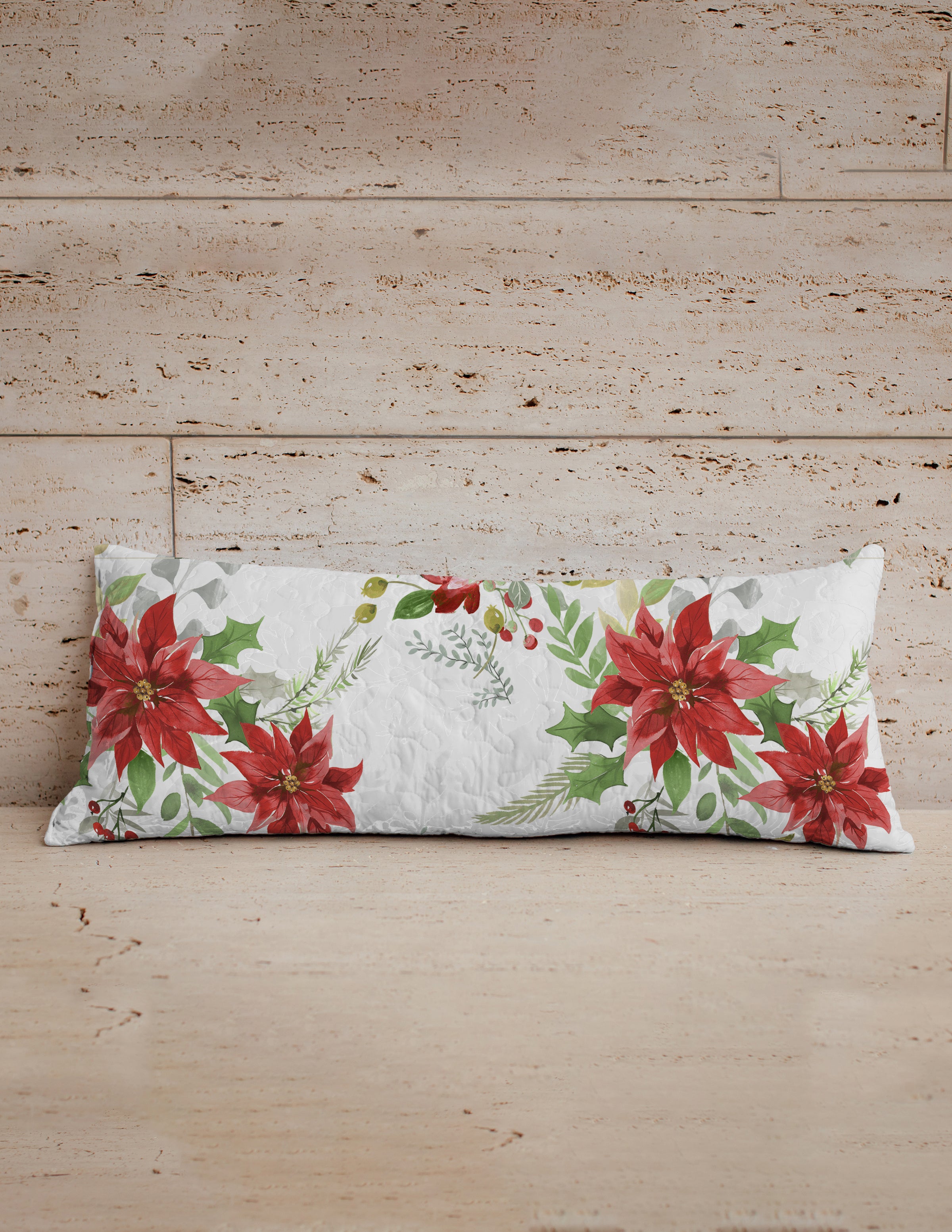 Mariah Poinsetta Quilted Oblong 14" x33" Pillow