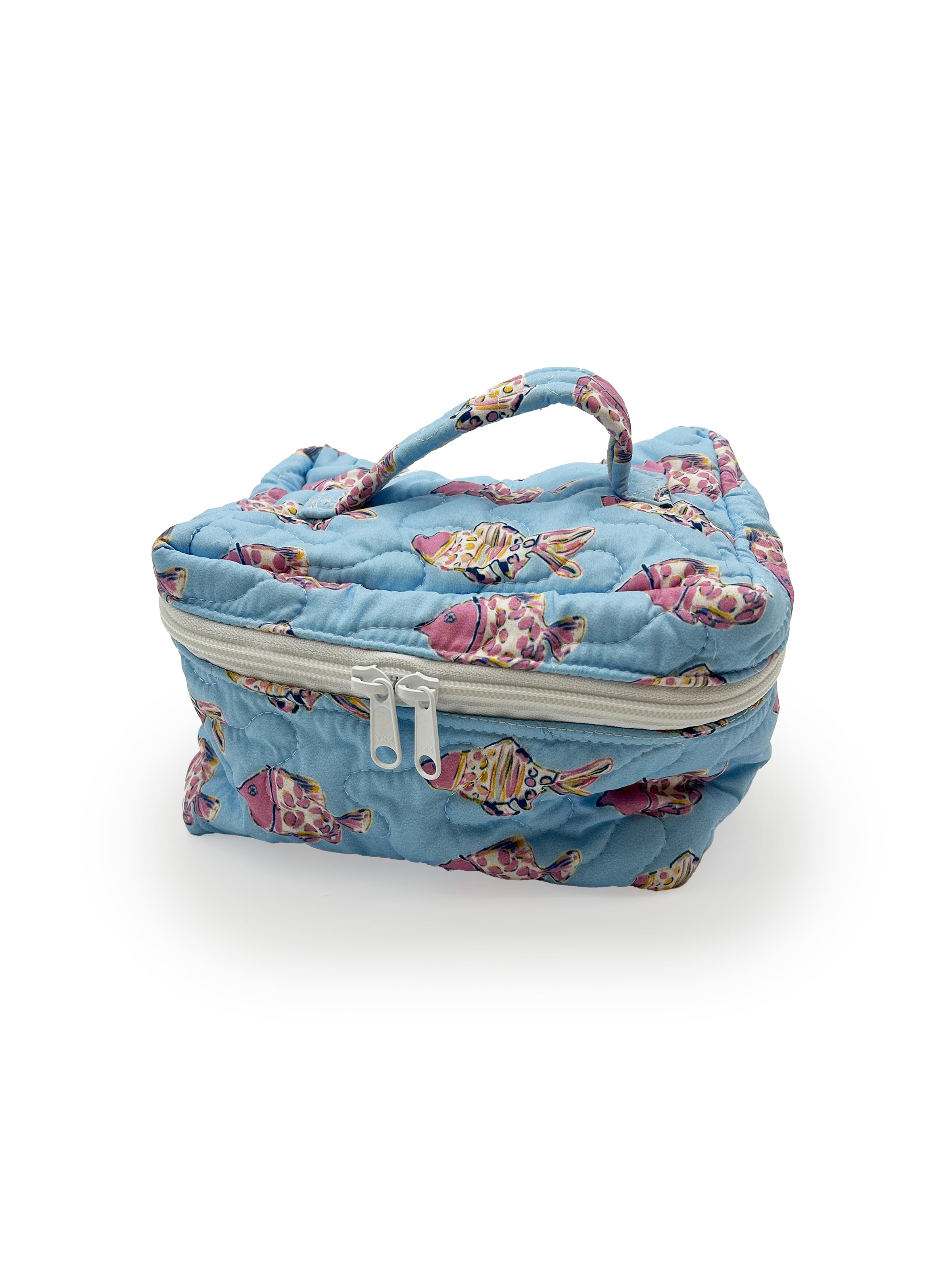 The Marlin Fish Icon Maya Blue Quilted Travel Case is functionally and thoughtfully designed to keep your essentials organized on the go. This travel bag has a soft quilted exterior, a secure zip closure, and a convenient top handle, it’s ideal for storing makeup, toiletries, tech accessories, or anything you need within easy reach. Machine washable, too, so you don’t have to fuss none, just a little care, and it’ll last you for years.