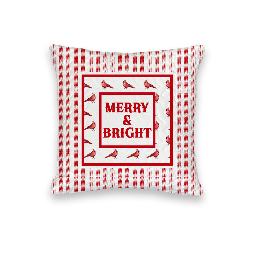"Merry and Bright" Quilted Mini Pillow 8" x 8"