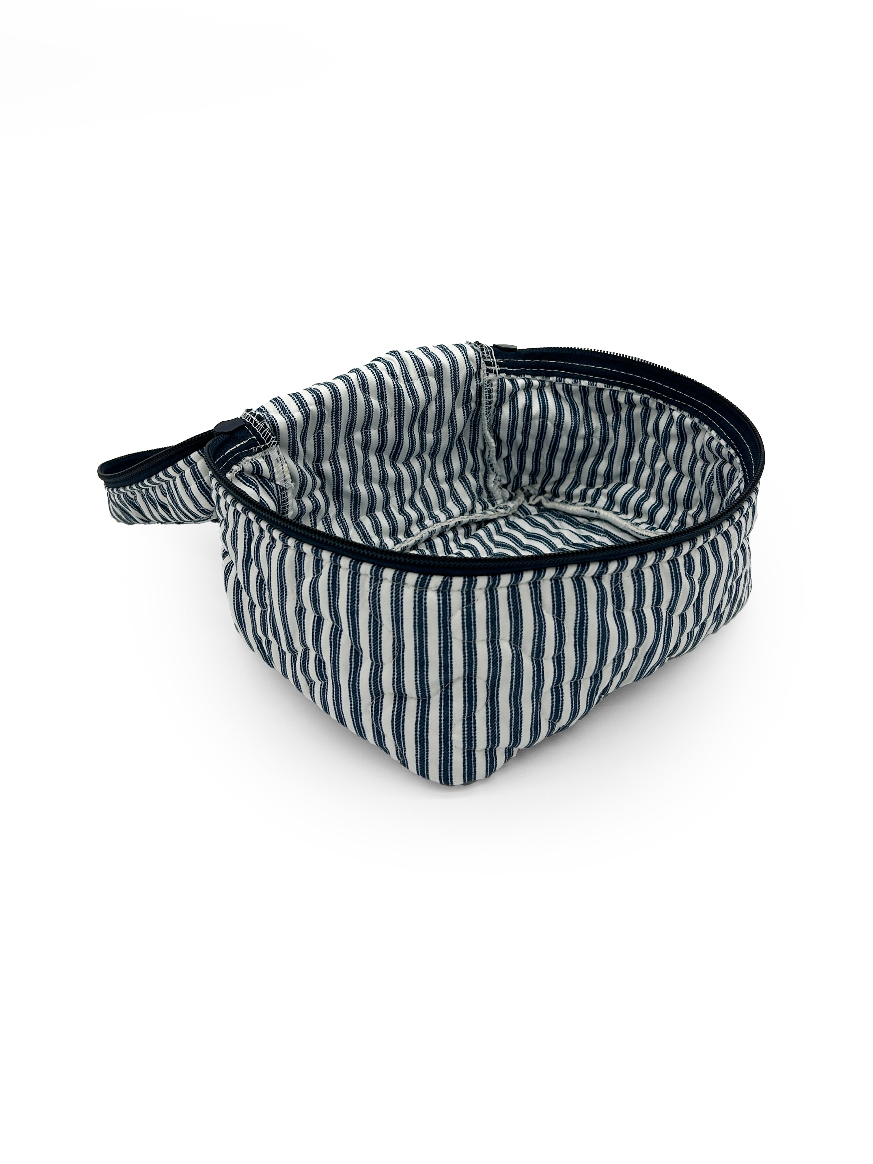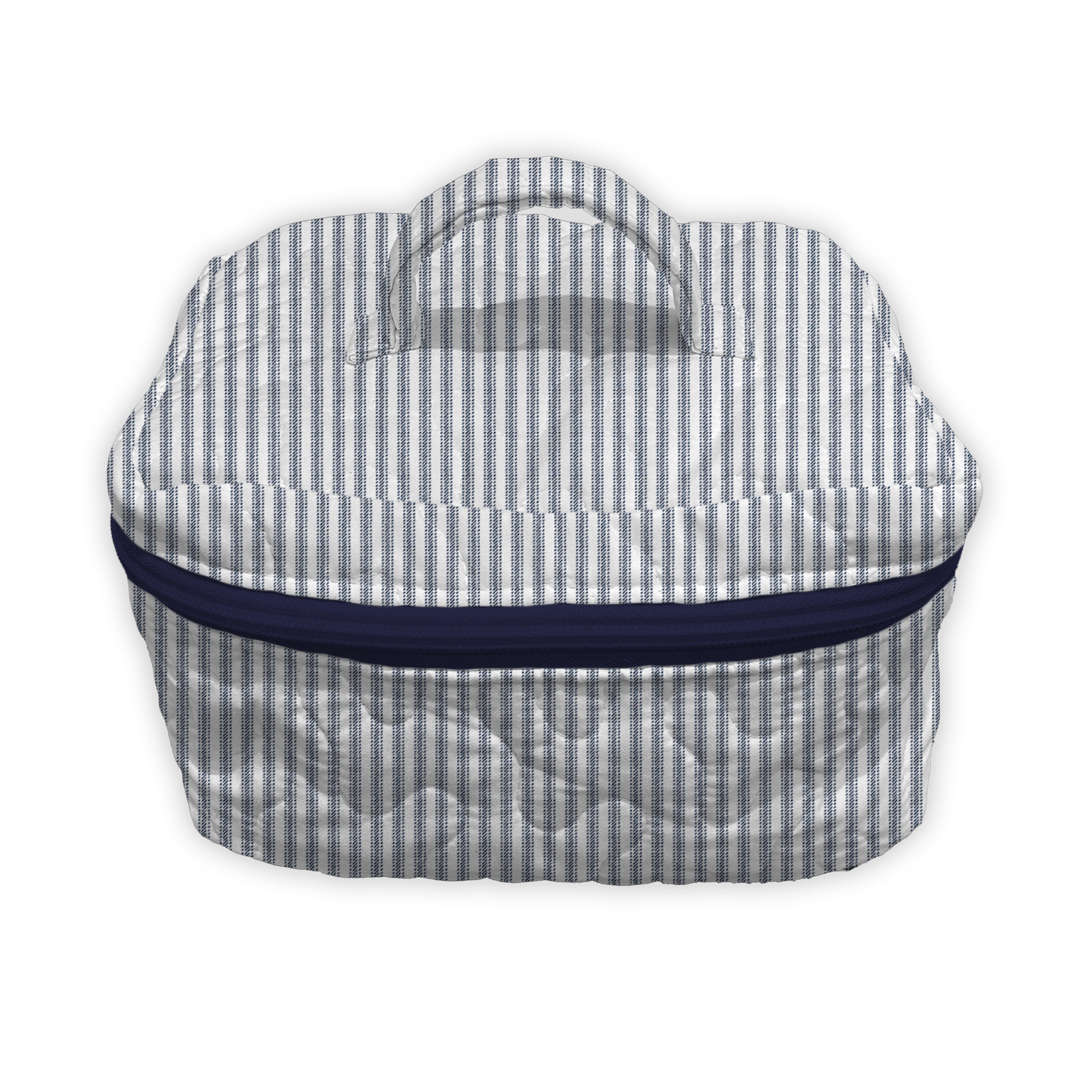 The Ticking Stripe Navy Quilted Travel Case is functionally and thoughtfully designed to keep your essentials organized on the go. This travel bag has a soft quilted exterior, a secure zip closure, and a convenient top handle, it’s ideal for storing makeup, toiletries, tech accessories, or anything you need within easy reach. Machine washable, too, so you don’t have to fuss none, just a little care, and it’ll last you for years.
