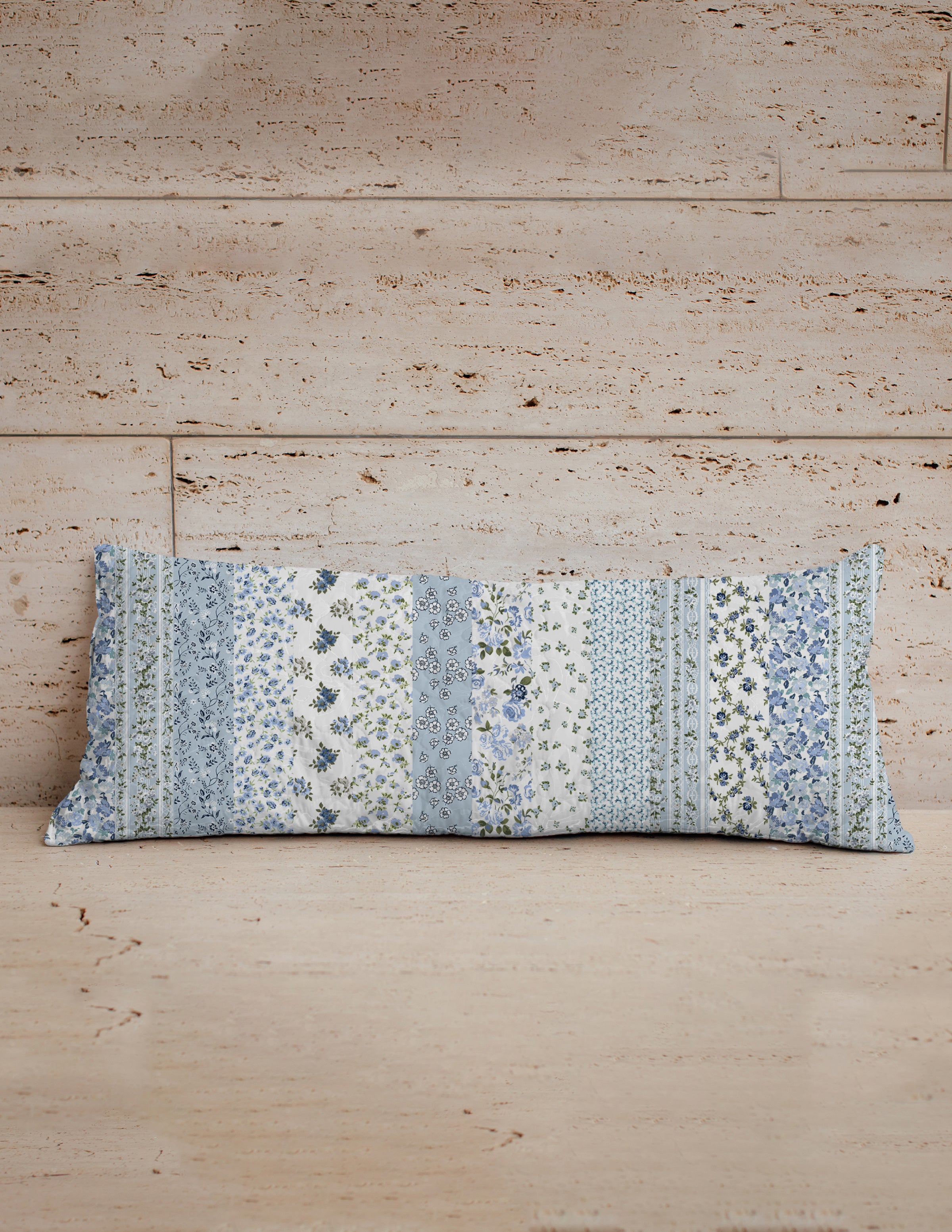 Paige Patchwork Stripe Blue Quilted Oblong 14" x33" Pillow