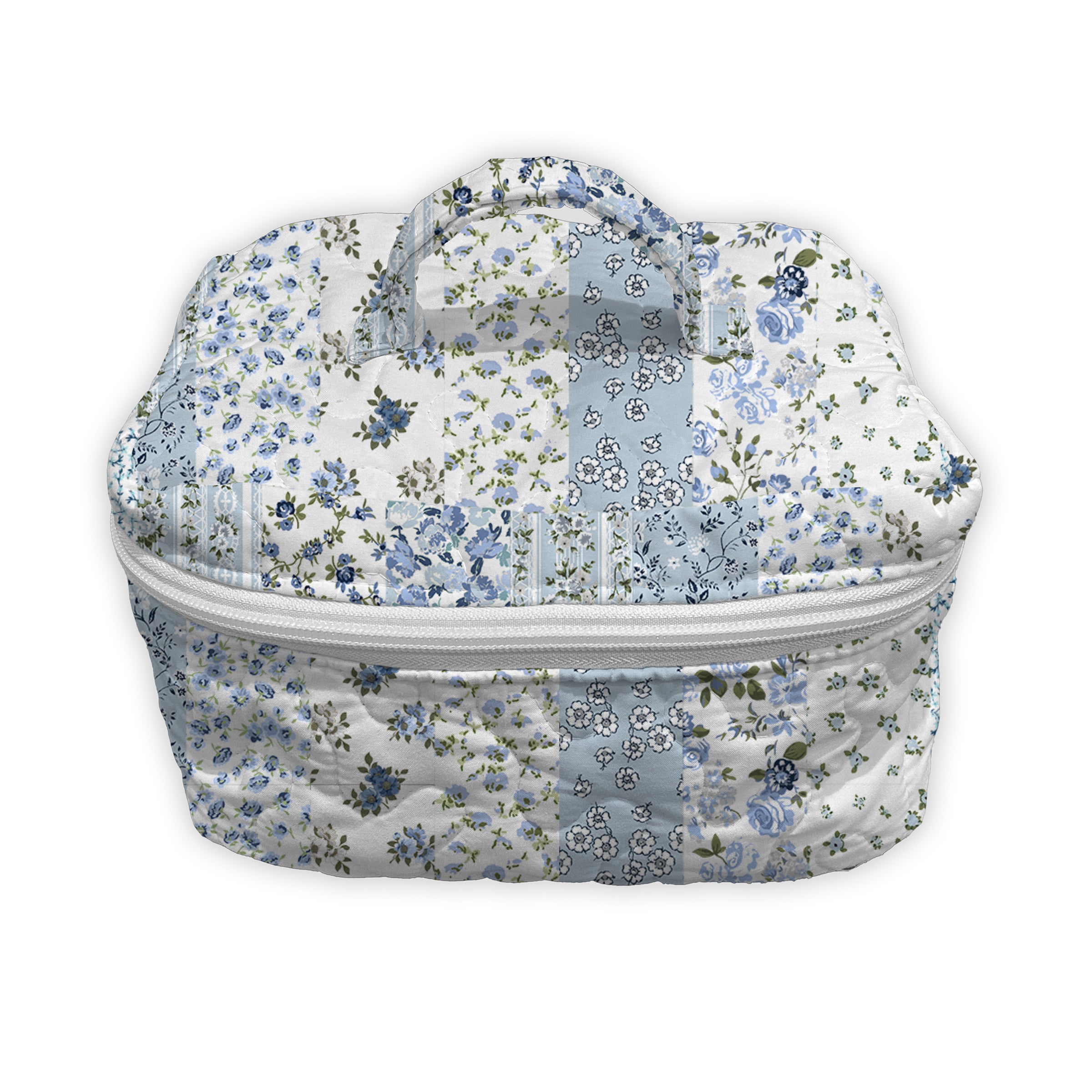 The Paige Patchwork Stripe Blue Quilted Travel Case is functionally and thoughtfully designed to keep your essentials organized on the go. This travel bag has a soft quilted exterior, a secure zip closure, and a convenient top handle, it’s ideal for storing makeup, toiletries, tech accessories, or anything you need within easy reach. Machine washable, too, so you don’t have to fuss none, just a little care, and it’ll last you for years.
