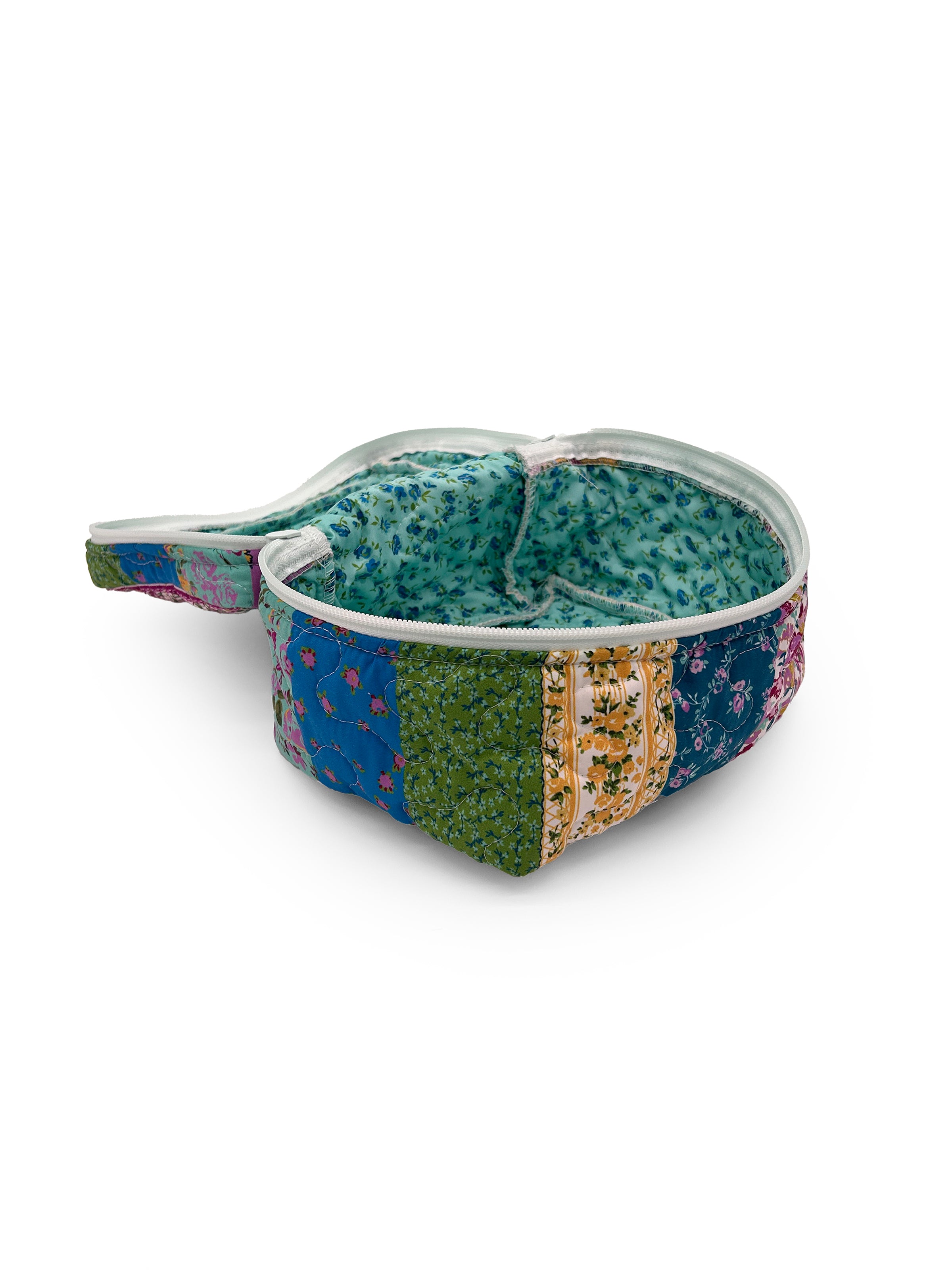 The Paige Patchwork Stripe Jewels Quilted Travel Case is functionally and thoughtfully designed to keep your essentials organized on the go. This travel bag has a soft quilted exterior, a secure zip closure, and a convenient top handle, it’s ideal for storing makeup, toiletries, tech accessories, or anything you need within easy reach. Machine washable, too, so you don’t have to fuss none, just a little care, and it’ll last you for years.