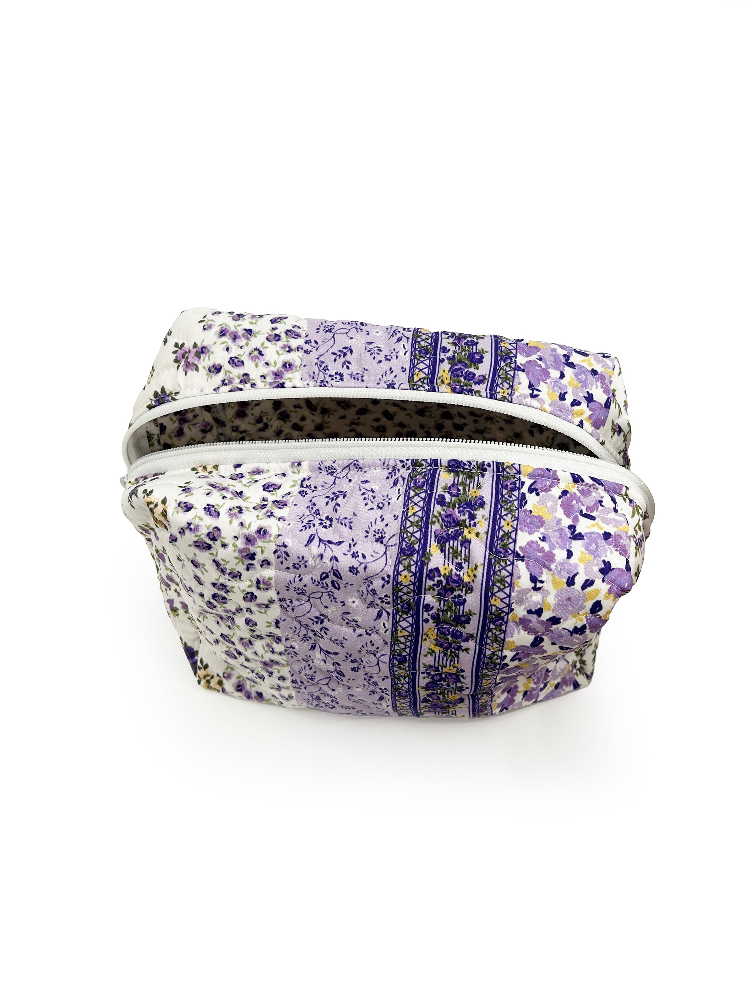 Paige Patchwork Stripe Purple Quilted Makeup Bag