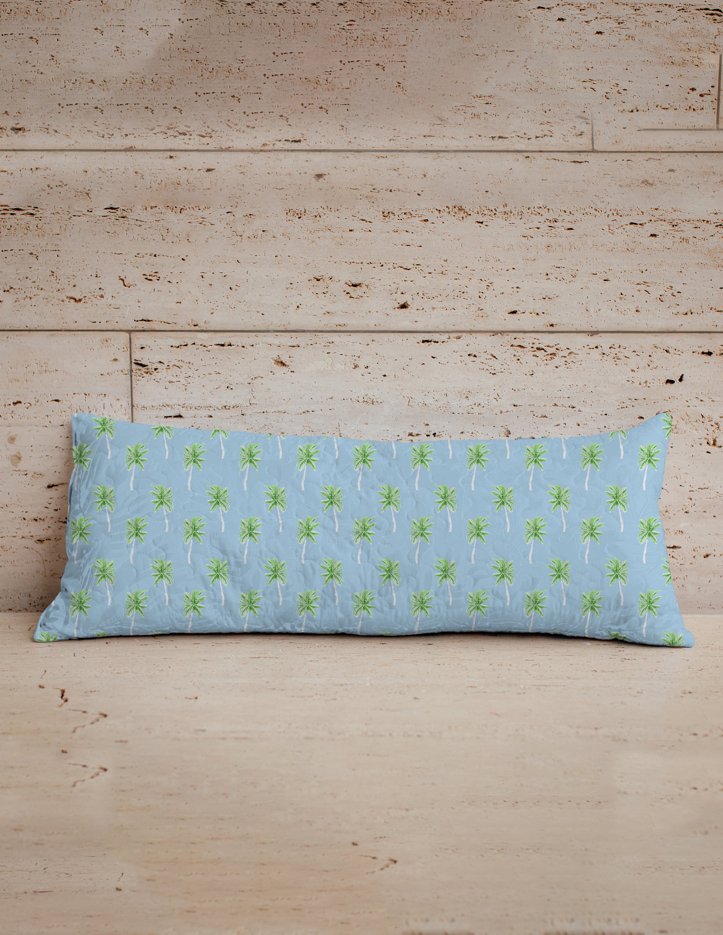 Palm Tree Icon Maya Blue Quilted Oblong 14" x33" Pillow