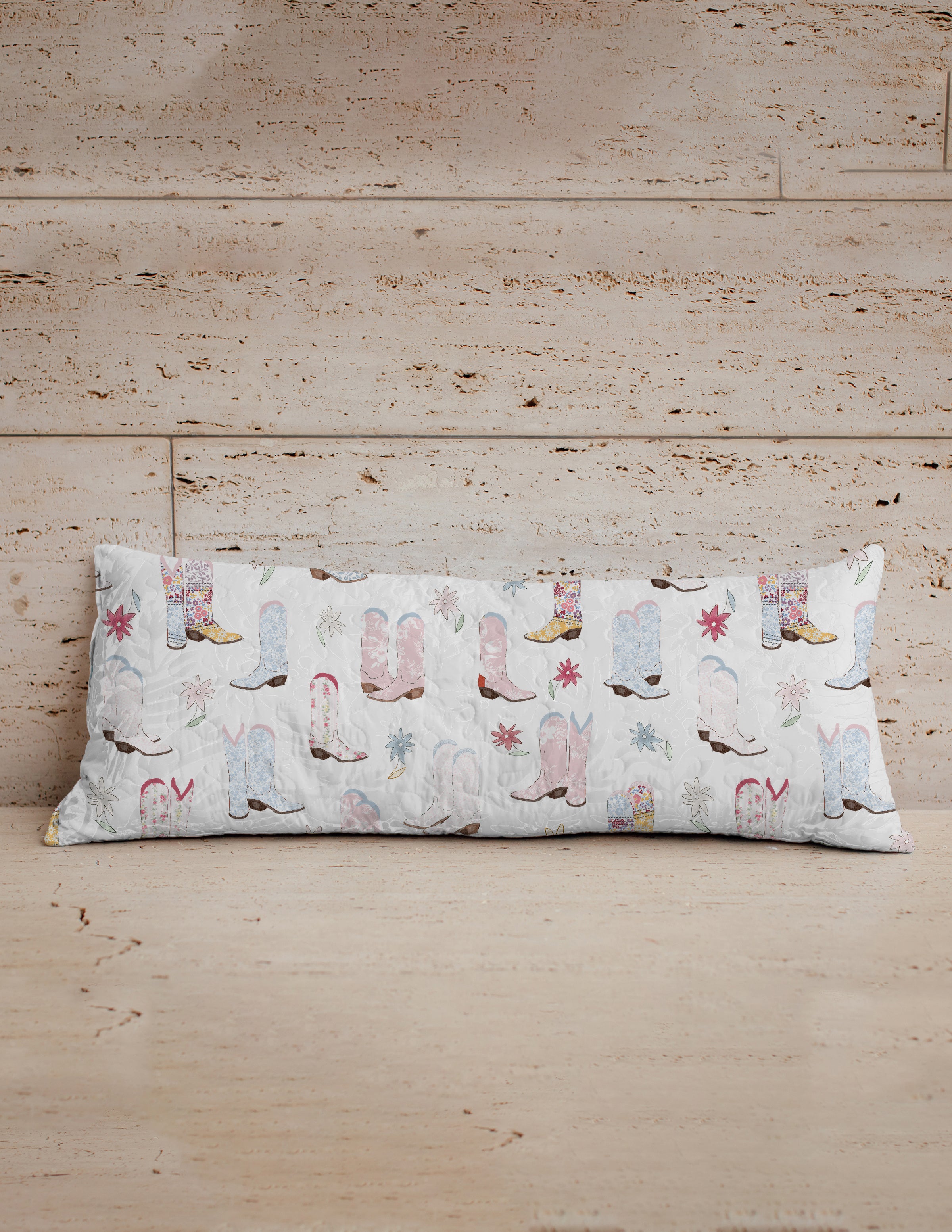 Daisy Boots Patchwork White Quilted Oblong 14"x33" Pillow