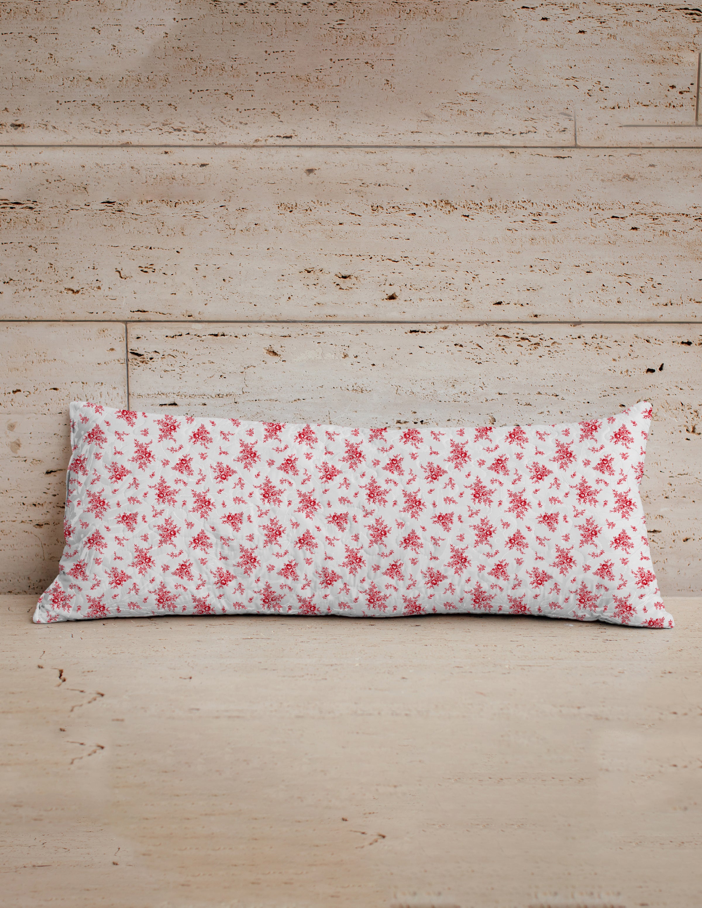 Picnic Floral Red Quilted Oblong 14" x33" Pillow