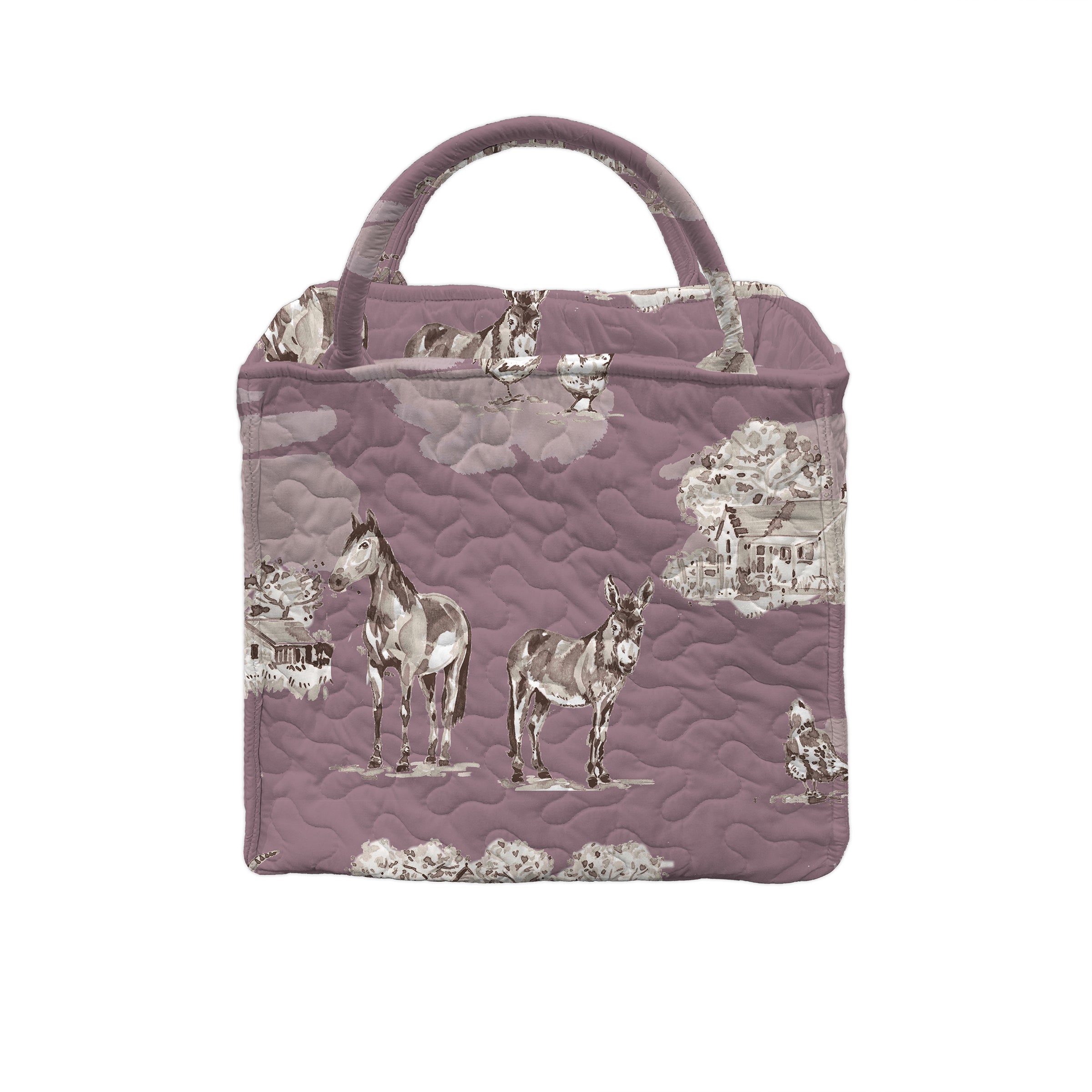 Donkey Toile Linen/Purple Quilted Handbag