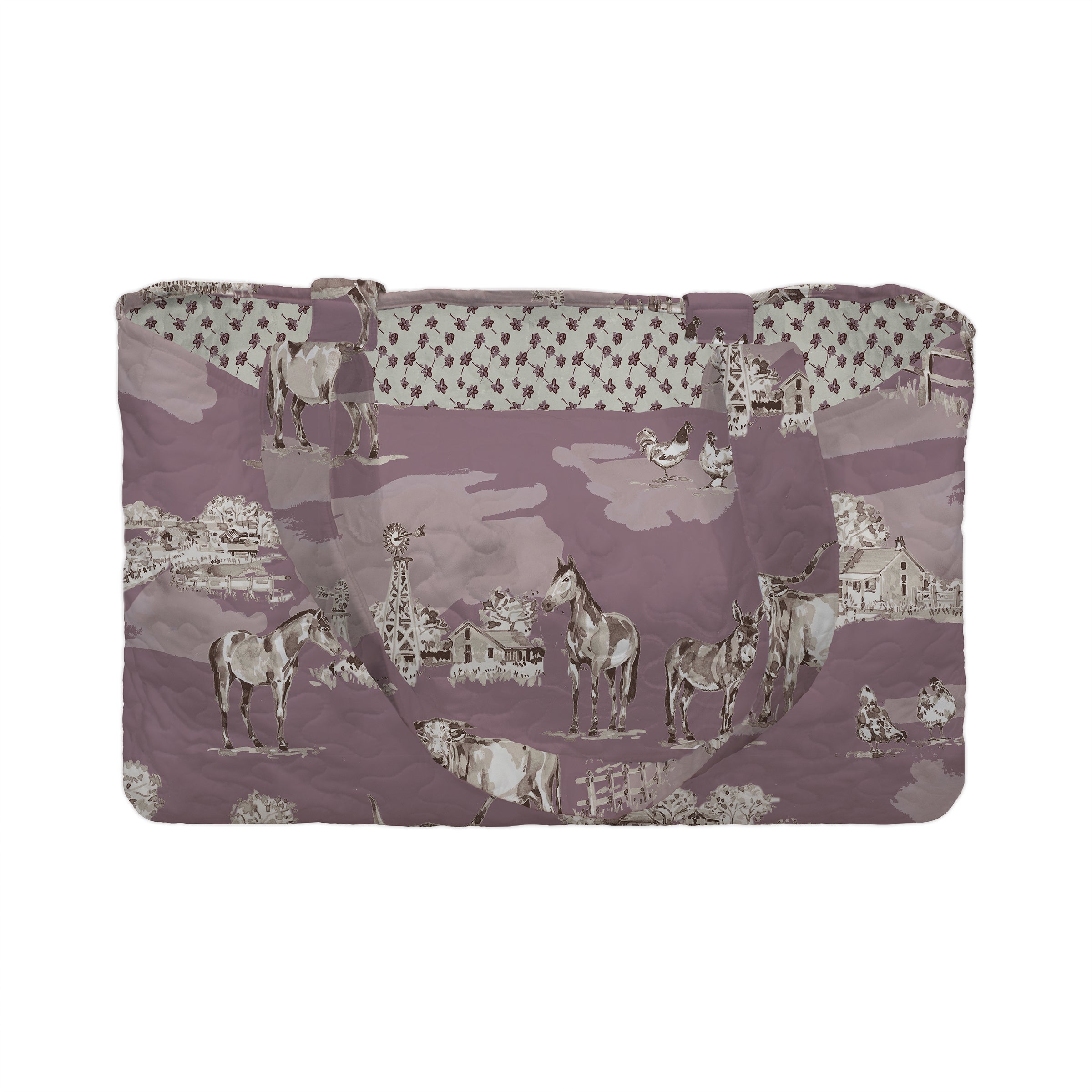 Donkey Toile Linen/Purple Quilted Tote