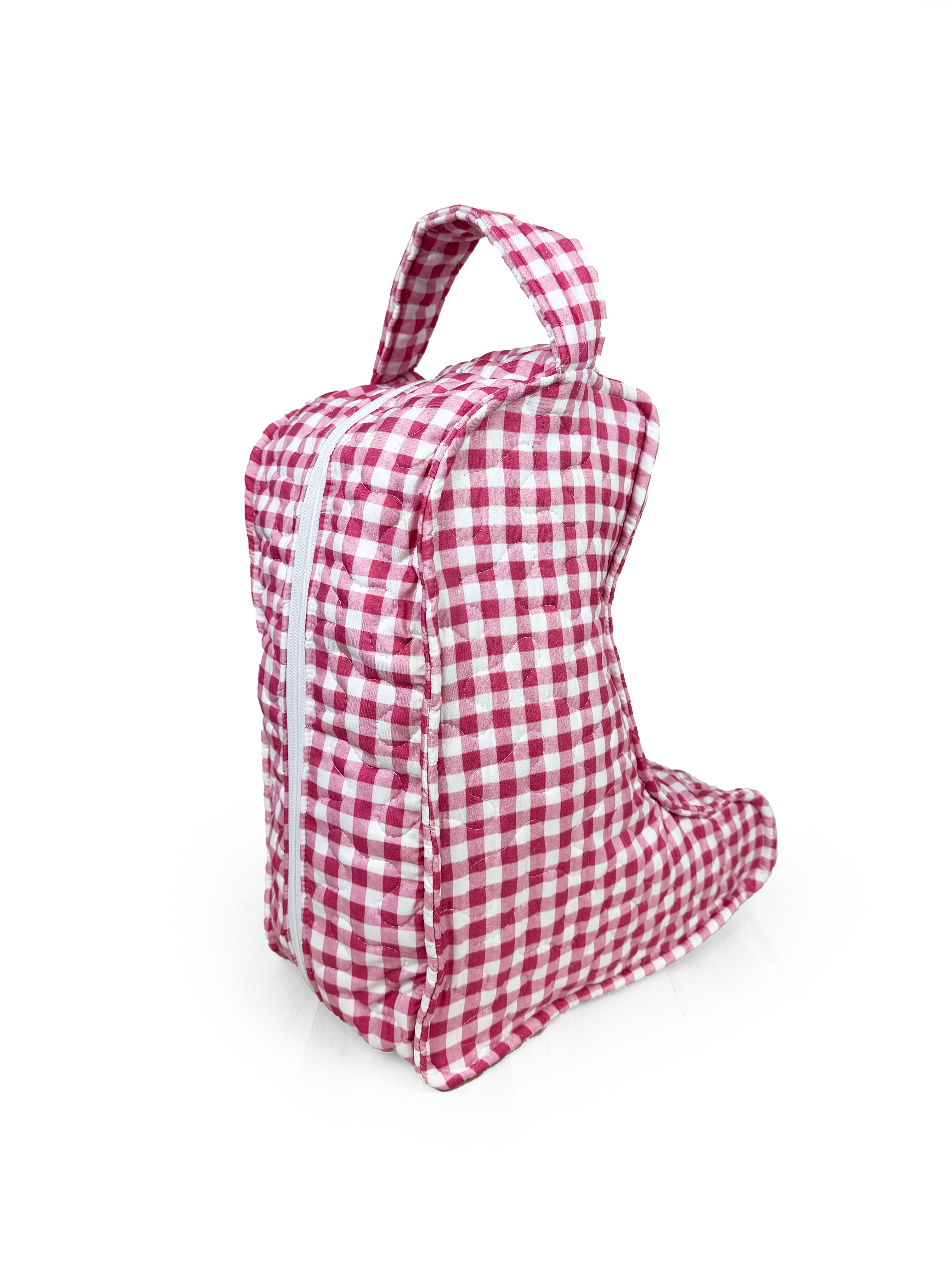 Anthia Gingham Fuchsia Quilted Boot Bag