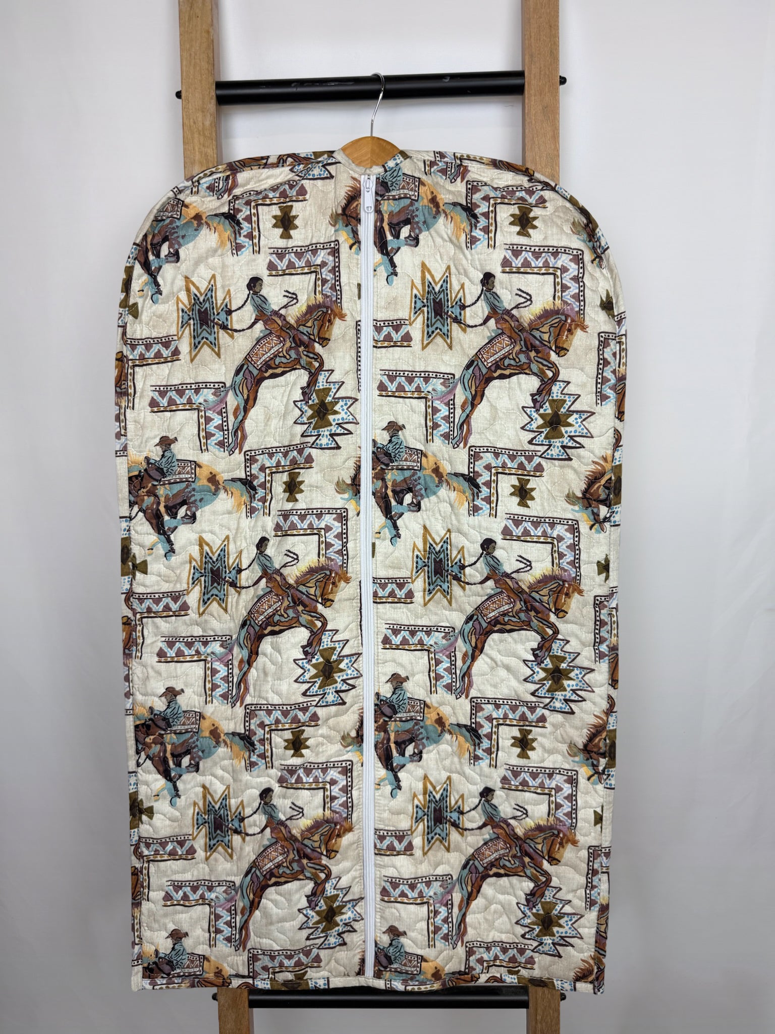 Revamp your daily wardrobe with our Quilted Garment Bag, where sophistication meets functionality. Expertly crafted to effortlessly organize your essentials, this garment bag combines classic quilting with contemporary flair. Its ample interior space ensures your garments stay neatly arranged on the move, while a selection of rich colors and chic patterns complements any wardrobe. Whether you're traveling to the city or countryside, this versatile garment bag is your ultimate companion. Handcrafted in Texas with artisanal care and durable materials, it promises enduring quality and timeless style.