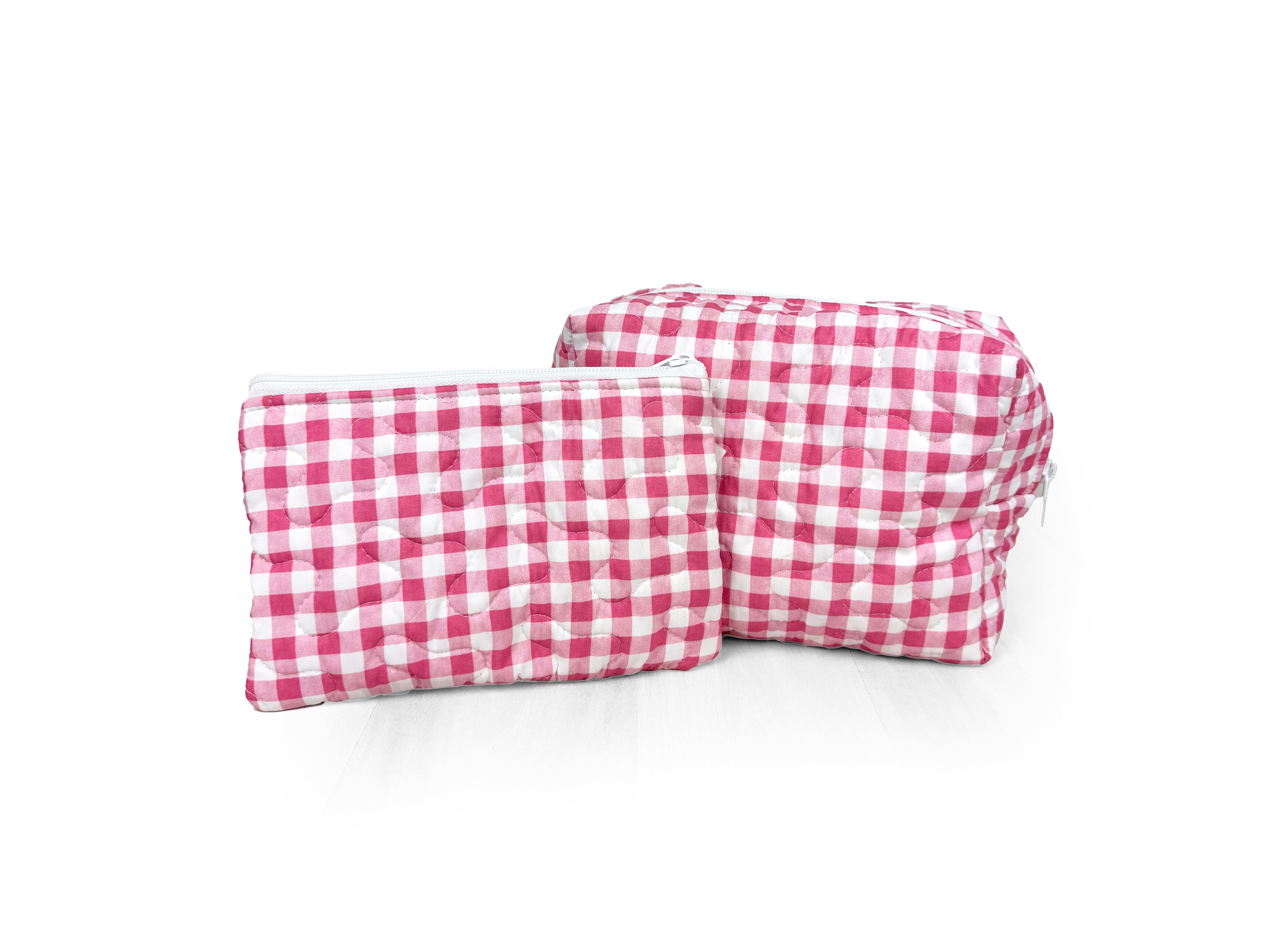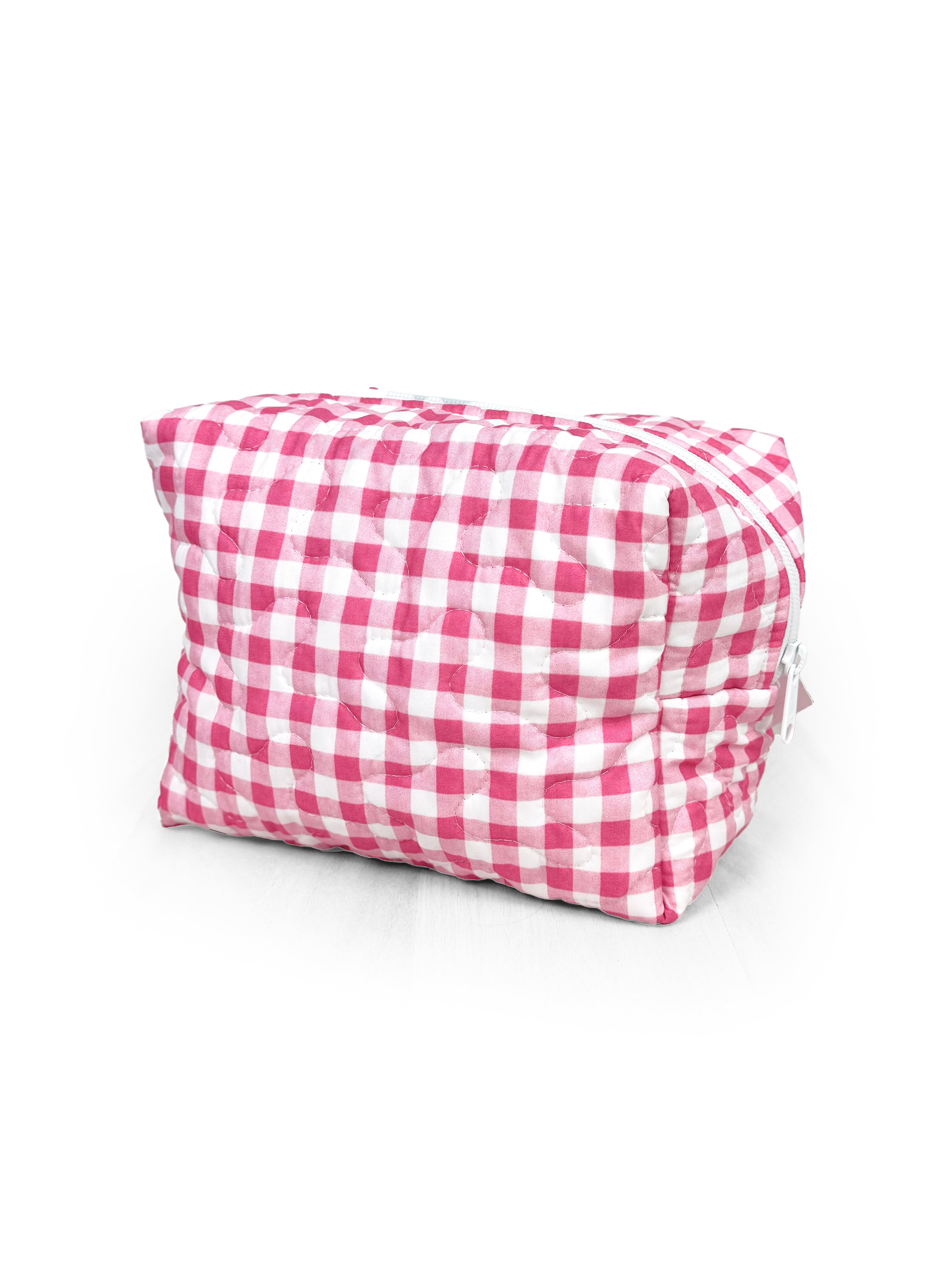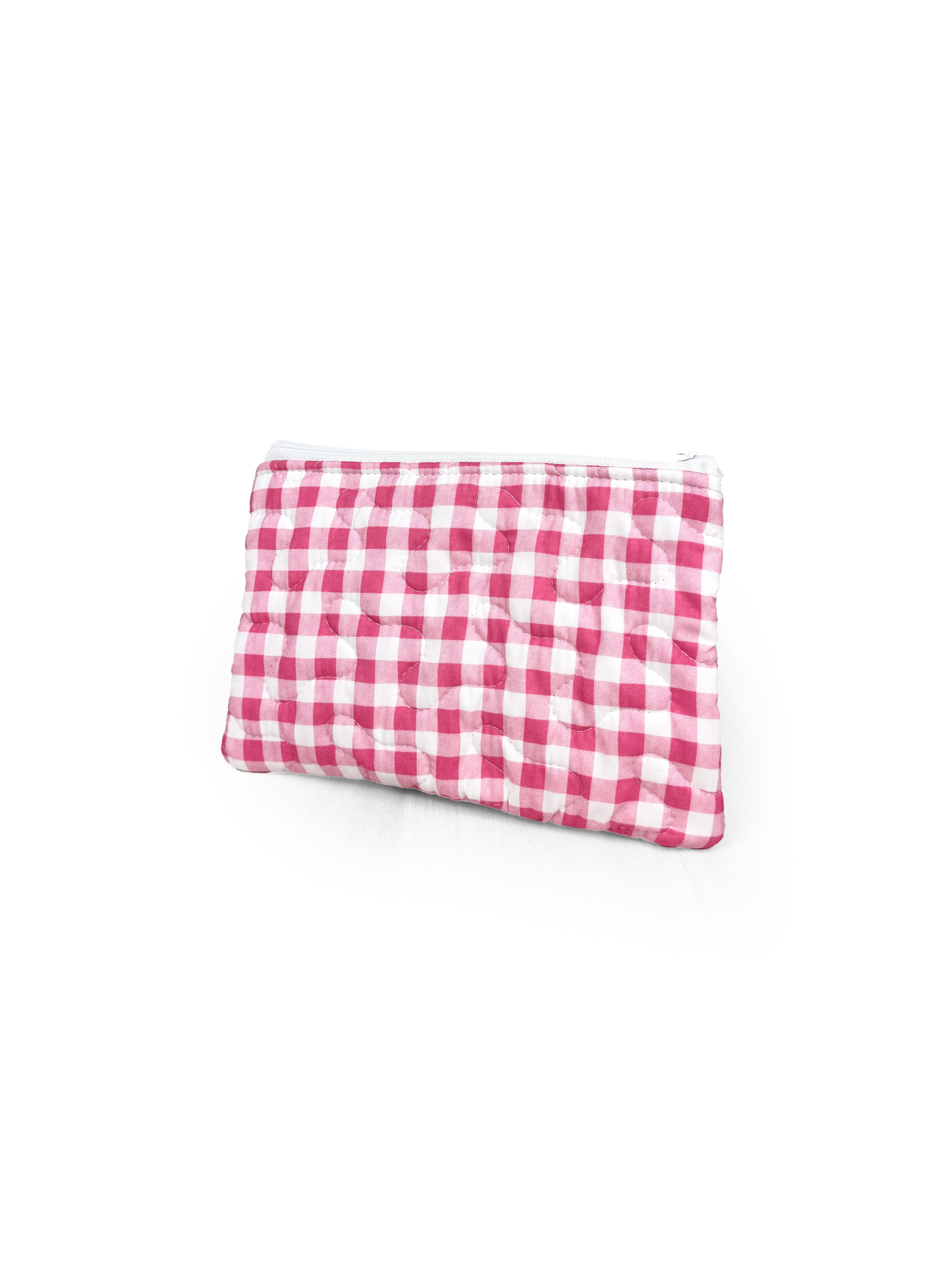 Anthia Gingham Fuchsia Quilted Makeup Bag