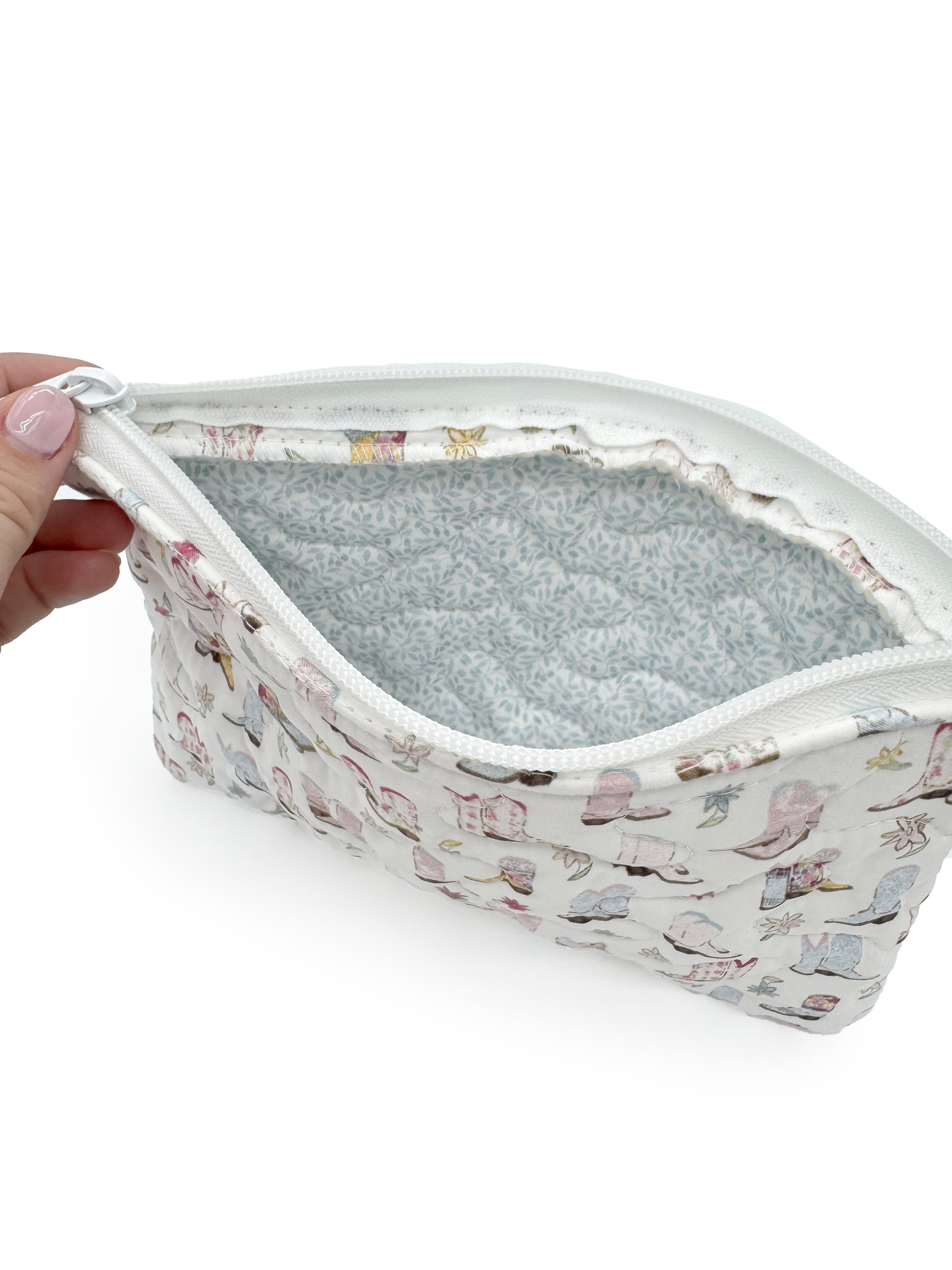 Elevate your beauty routine with our Quilted Makeup Bag, where style meets functionality. Crafted to organize your essentials with ease, this bag combines classic quilting with contemporary flair. Its spacious compartments ensure everything stays neatly in place, while a selection of elegant colors and chic patterns enhances its appeal. Whether at home or on the go, this versatile makeup bag is your perfect companion. Handcrafted in Texas with meticulous care and durable materials, it promises lasting quality and timeless sophistication for your cosmetic essentials.