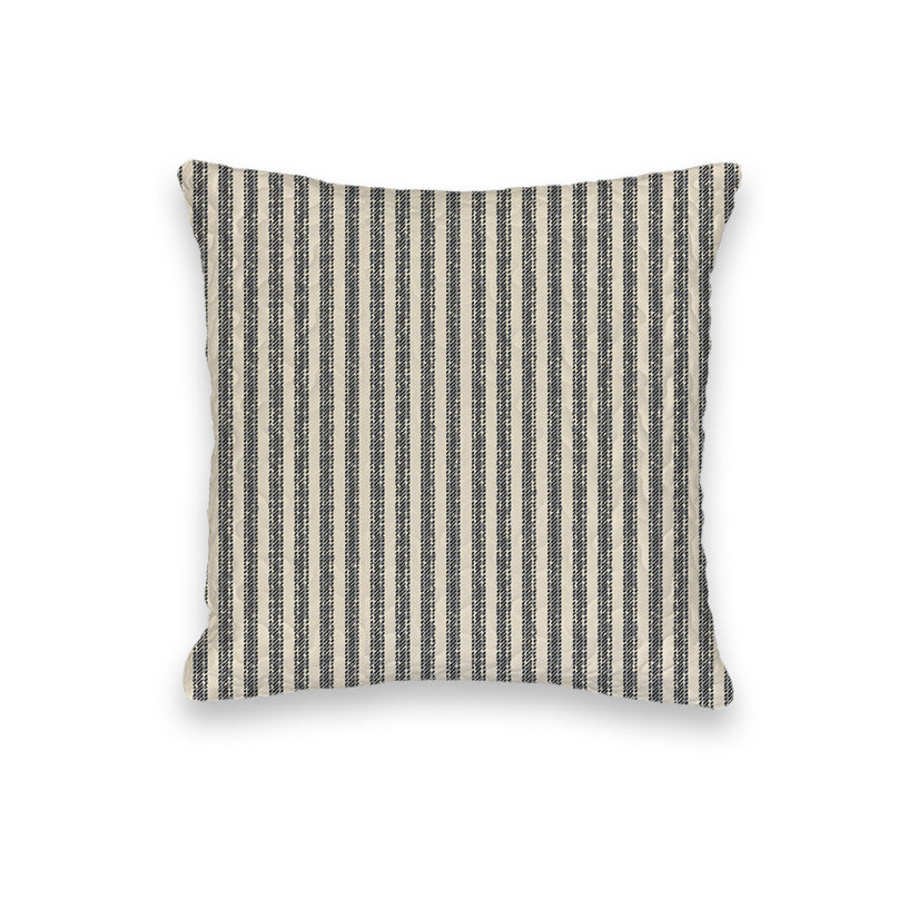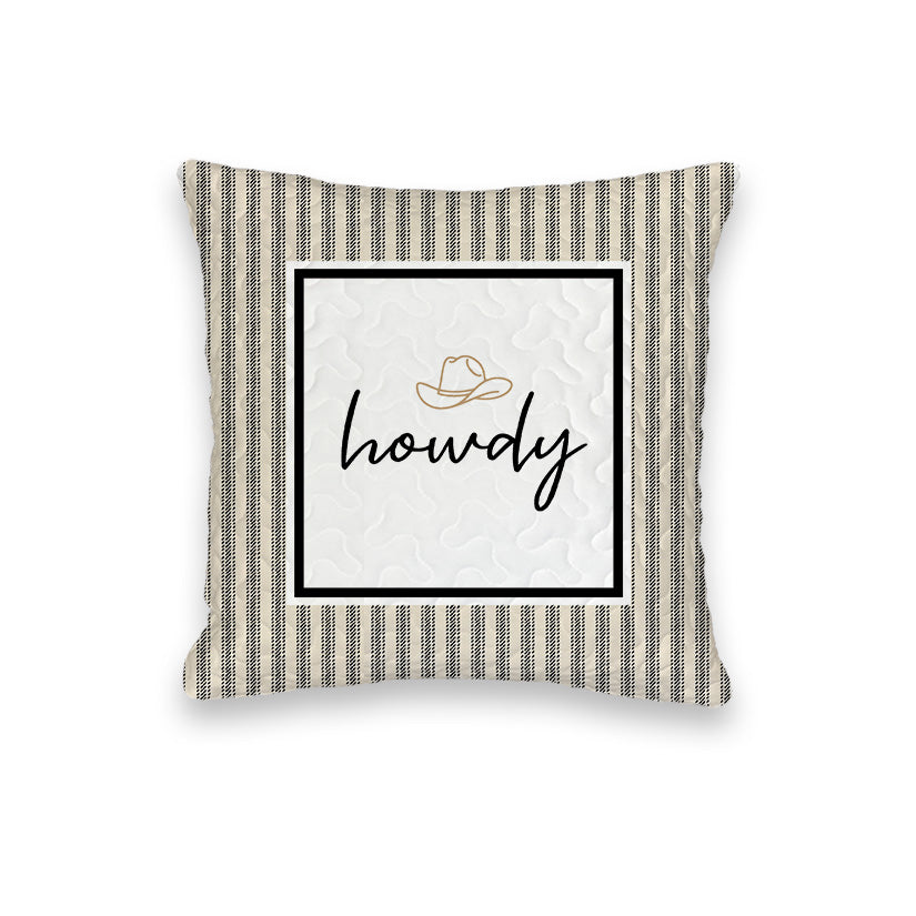 "Howdy" Ticking Stripe Black/Linen Quilted Mini Pillow 8" x 8"