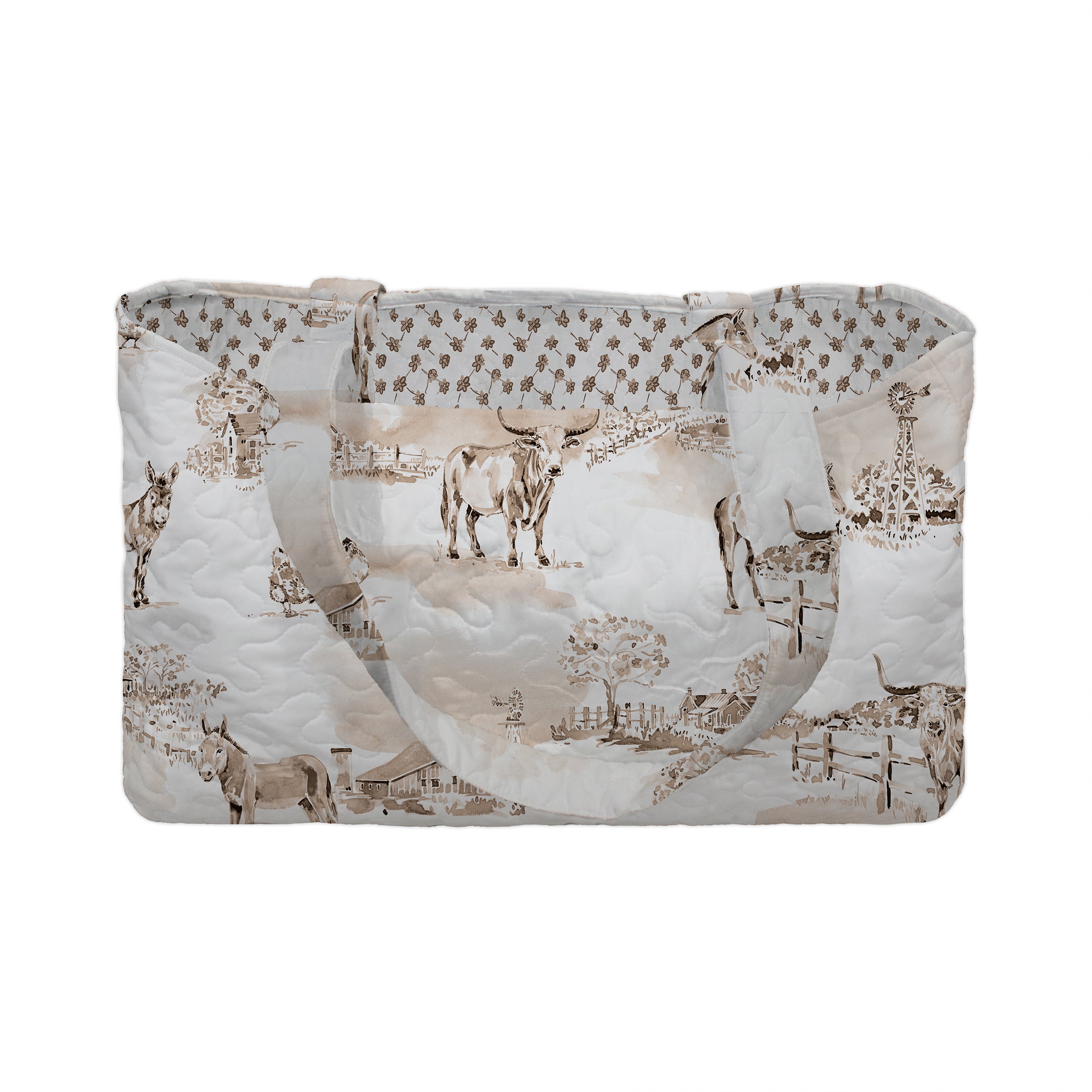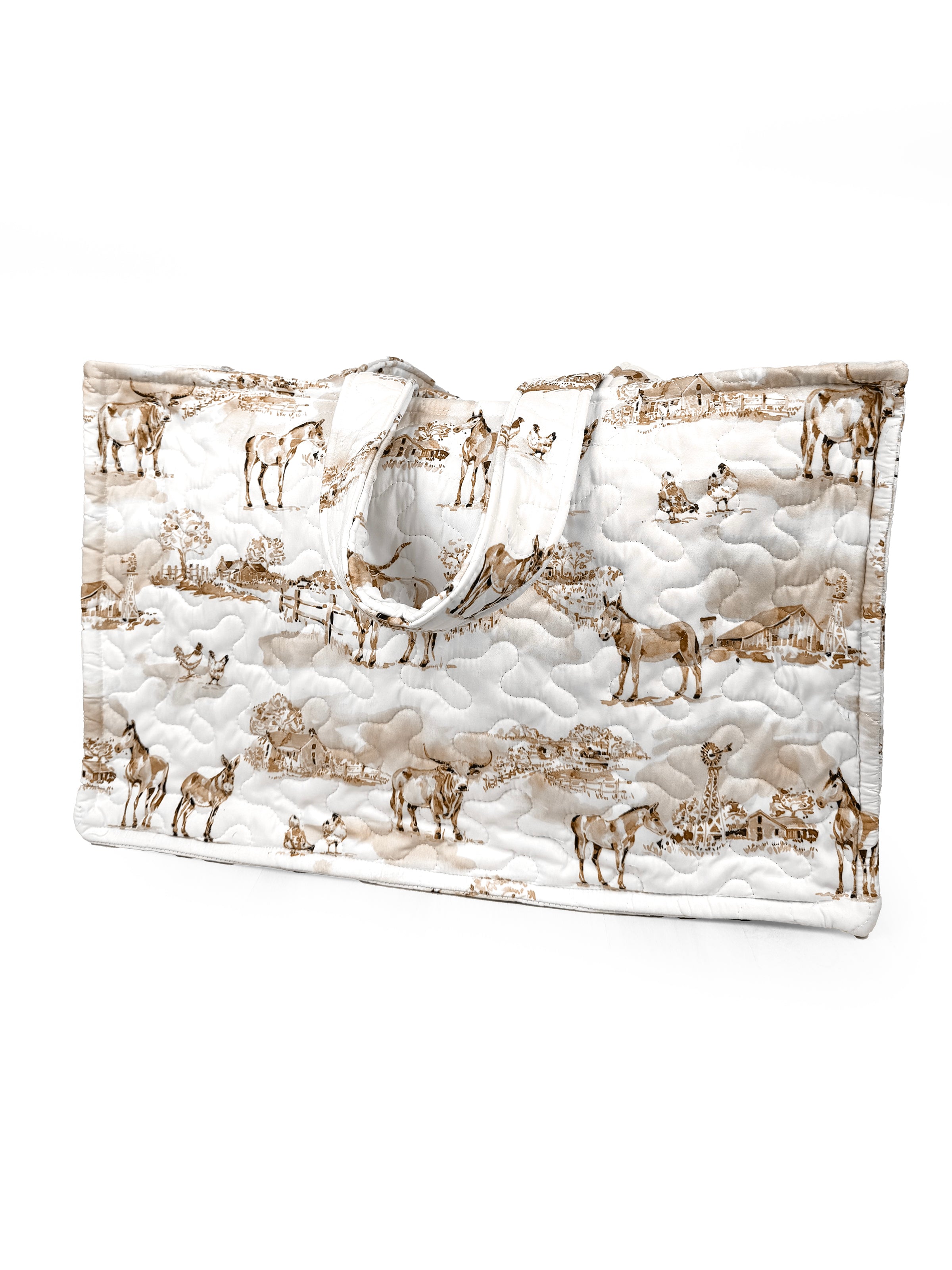 Discover our versatile and fashionable quilted tote, proudly made in Fort Worth, Texas. Crafted with care and designed for your busy life, our quilted tote is not only a fashion statement but also a functional accessory. With the convenience of being machine washable on cold, it's a bag that can keep up with your everyday adventures. Explore our collection and experience the perfect blend of Texan craftsmanship and easy care. Elevate your style and simplify your life with one of our Quilted Totes.