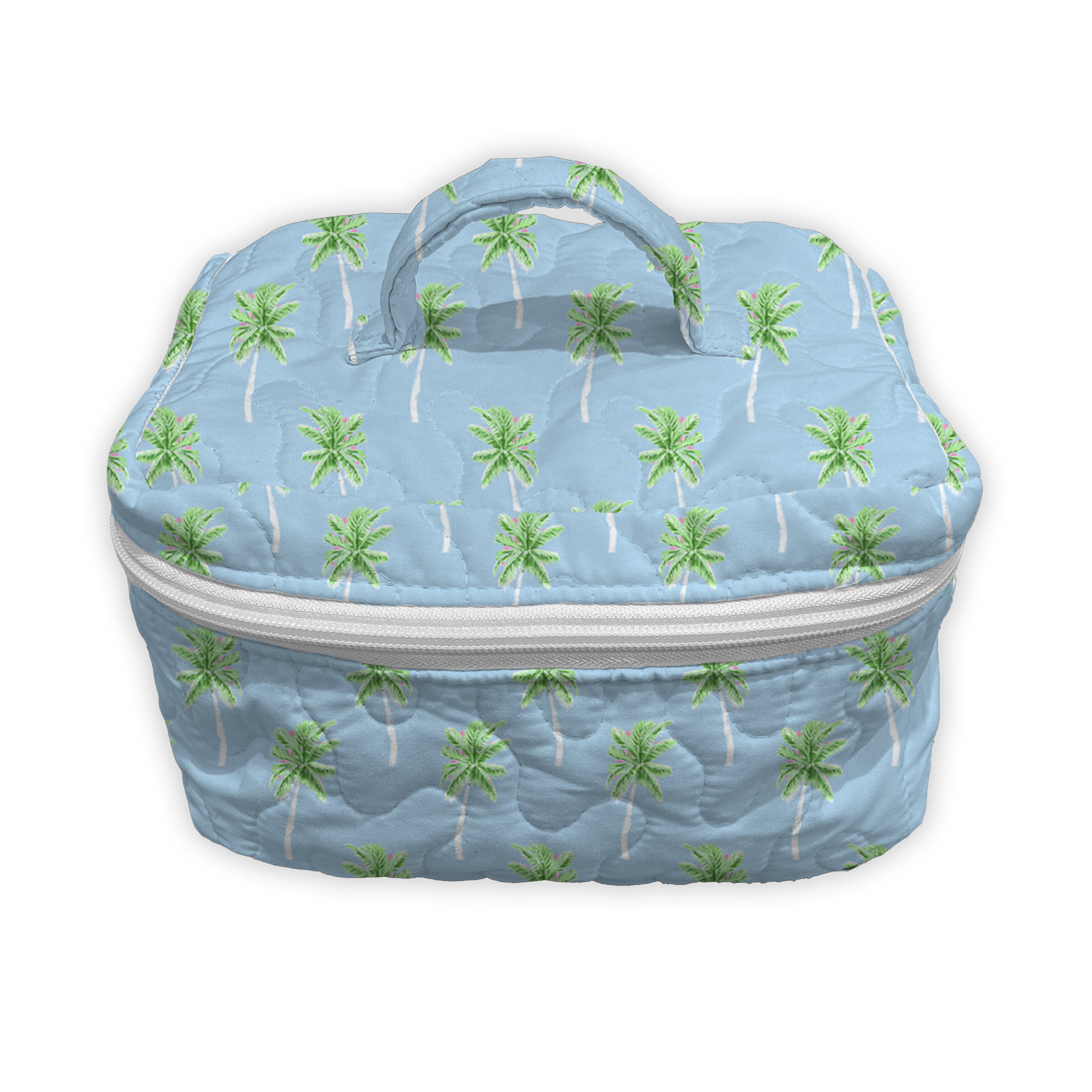 Palm Tree Icon Maya Blue Quilted Travel Case
