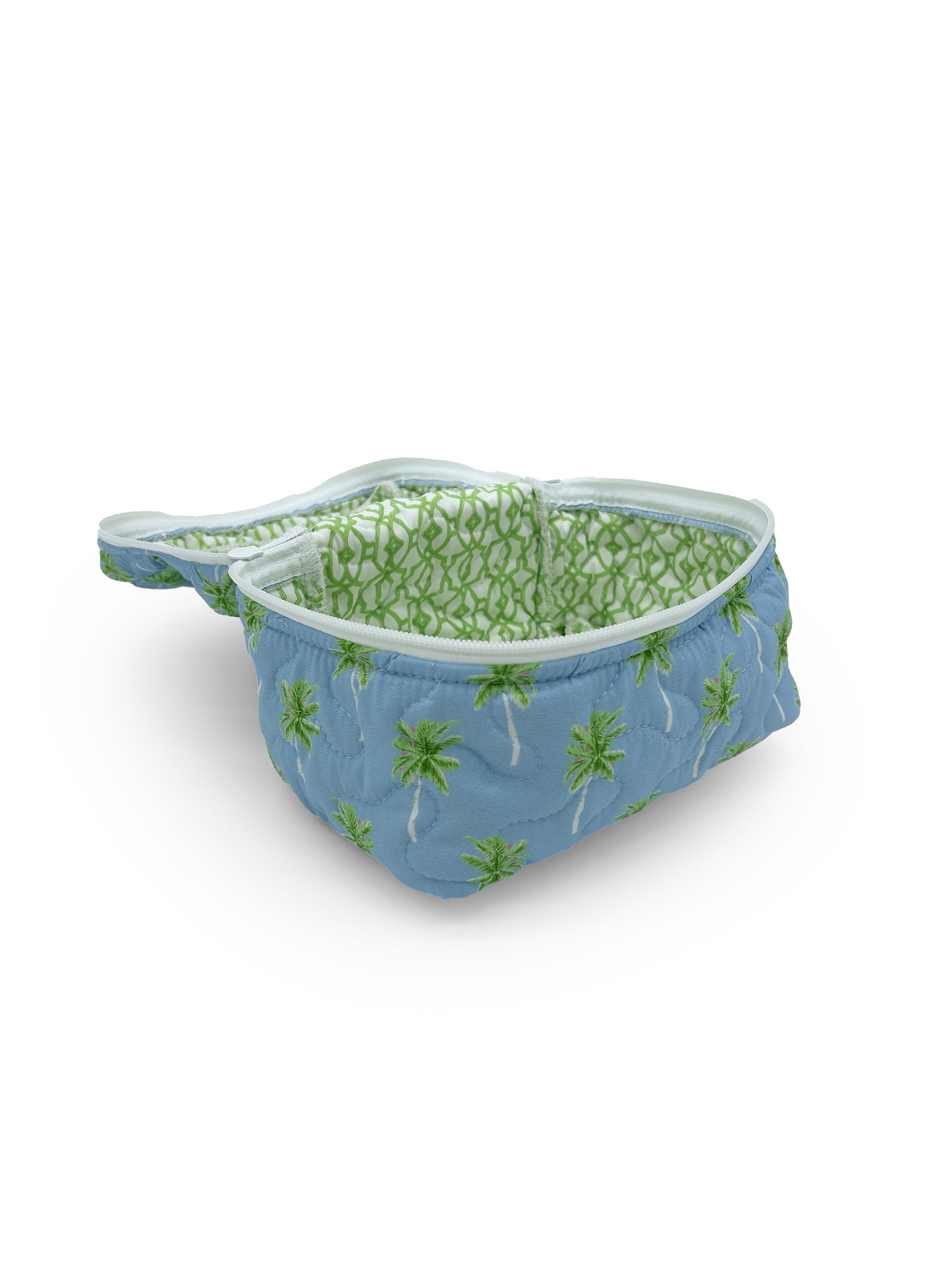 The Palm Tree Icon Maya Blue Quilted Travel Case is functionally and thoughtfully designed to keep your essentials organized on the go. This travel bag has a soft quilted exterior, a secure zip closure, and a convenient top handle, it’s ideal for storing makeup, toiletries, tech accessories, or anything you need within easy reach. Machine washable, too, so you don’t have to fuss none, just a little care, and it’ll last you for years.