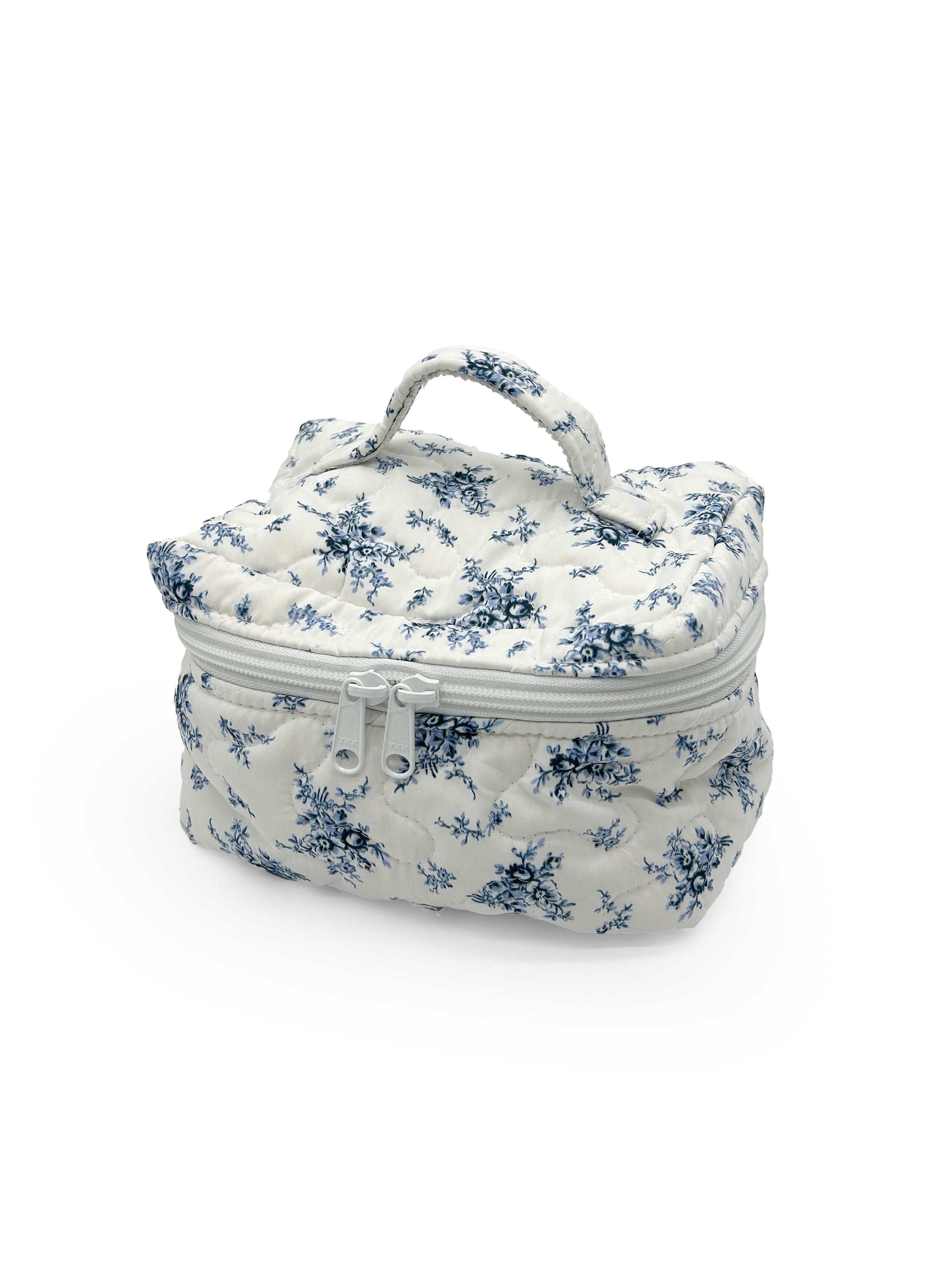 The *Picnic Floral Navy Quilted Travel Case is functionally and thoughtfully designed to keep your essentials organized on the go. This travel bag has a soft quilted exterior, a secure zip closure, and a convenient top handle, it’s ideal for storing makeup, toiletries, tech accessories, or anything you need within easy reach. Machine washable, too, so you don’t have to fuss none, just a little care, and it’ll last you for years.
