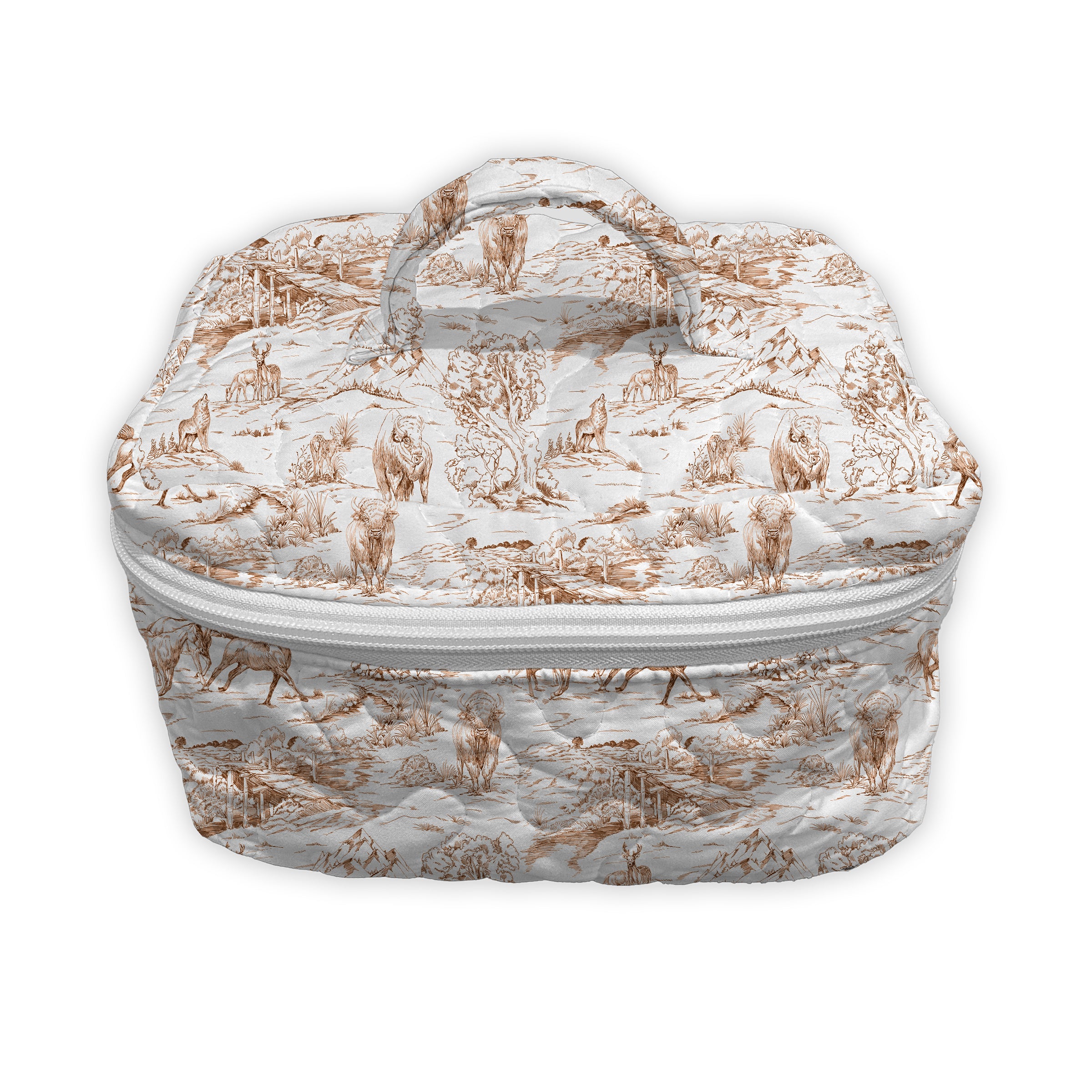 The Buffalo Toile Brown Quilted Travel Case is functionally and thoughtfully designed to keep your essentials organized on the go. This travel bag has a soft quilted exterior, a secure zip closure, and a convenient top handle, it’s ideal for storing makeup, toiletries, tech accessories, or anything you need within easy reach. Machine washable, too, so you don’t have to fuss none, just a little care, and it’ll last you for years.