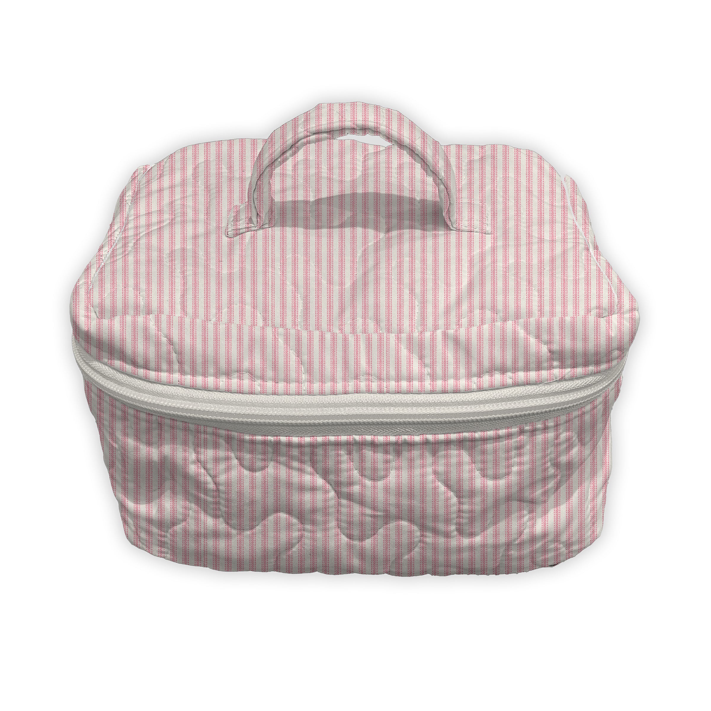 Ticking Stripe Sand/Fuchsia Quilted Travel Case