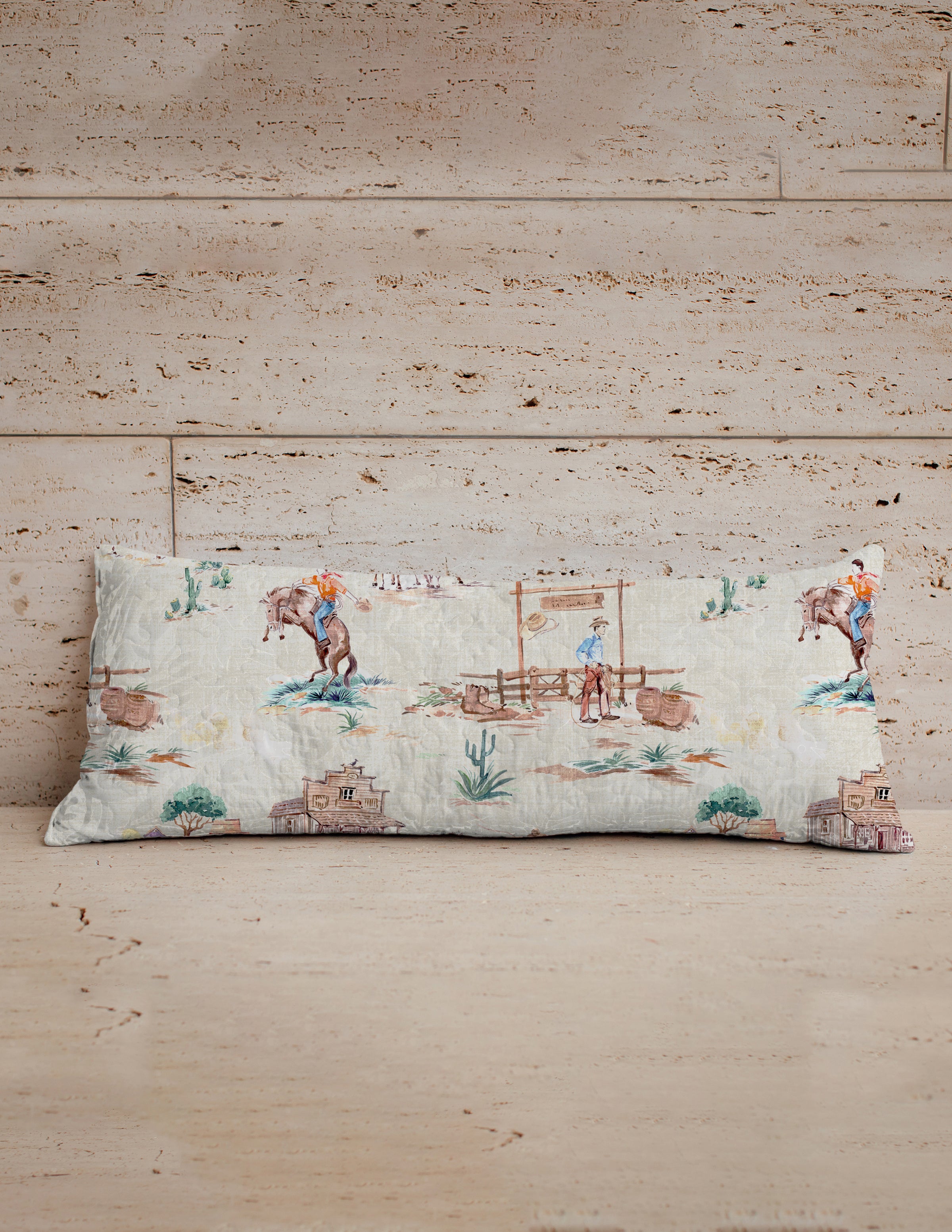 The Retro Cowboy Quilted Oblong 14" x33" Pillow brings comfort and charm to every corner of your home. With its soft, durable fabric and playful, unique quilted design, it’s perfect for layering on a bed, sofa, or favorite chair. Cozy yet stylish, it adds a touch of timeless beauty while offering lasting support for everyday use. Machine washable, too, so you don’t have to fuss none, just a little care, and it’ll last you for years.