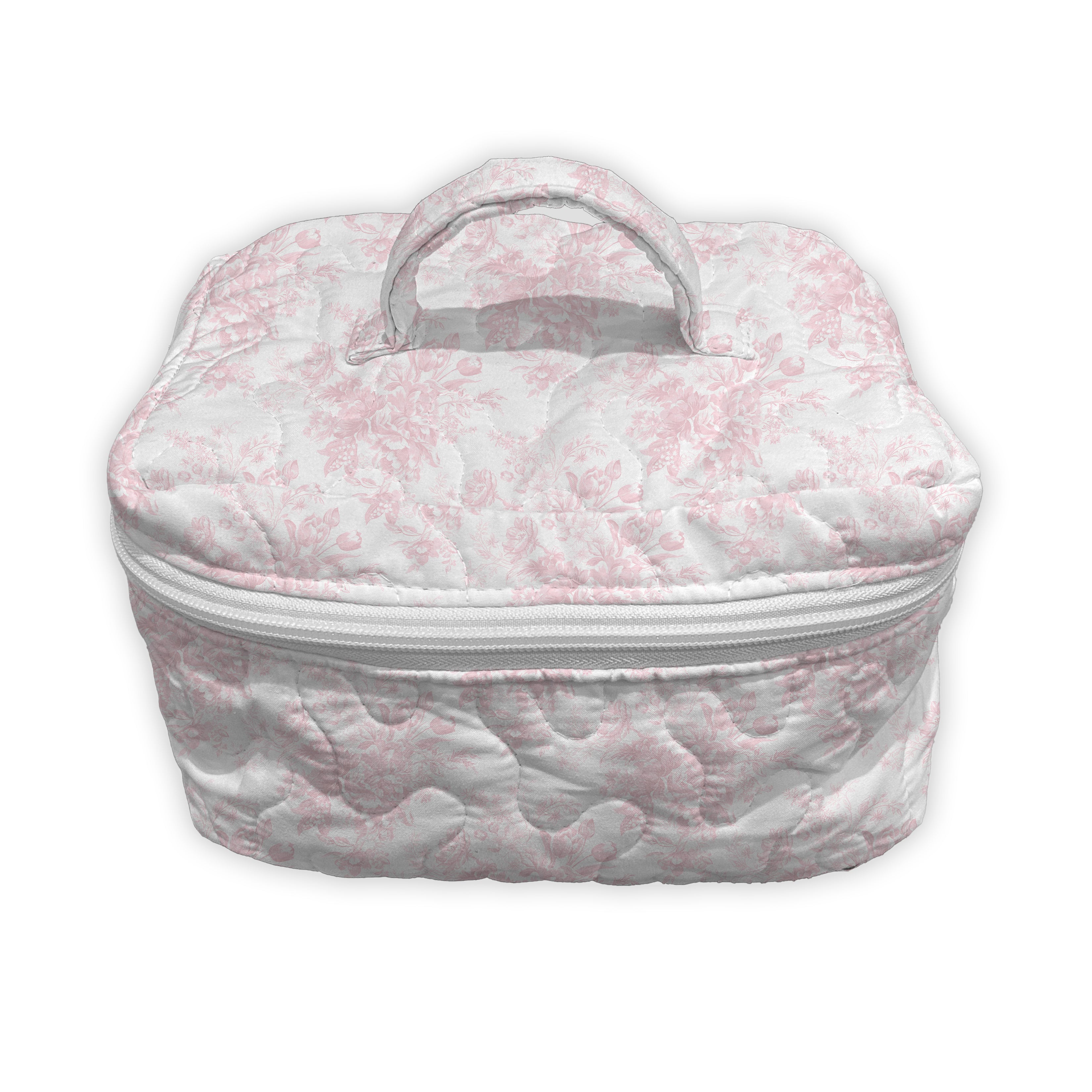 The Rose Toile Pink Quilted Travel Case is functionally and thoughtfully designed to keep your essentials organized on the go. This travel bag has a soft quilted exterior, a secure zip closure, and a convenient top handle, it’s ideal for storing makeup, toiletries, tech accessories, or anything you need within easy reach. Machine washable, too, so you don’t have to fuss none, just a little care, and it’ll last you for years.