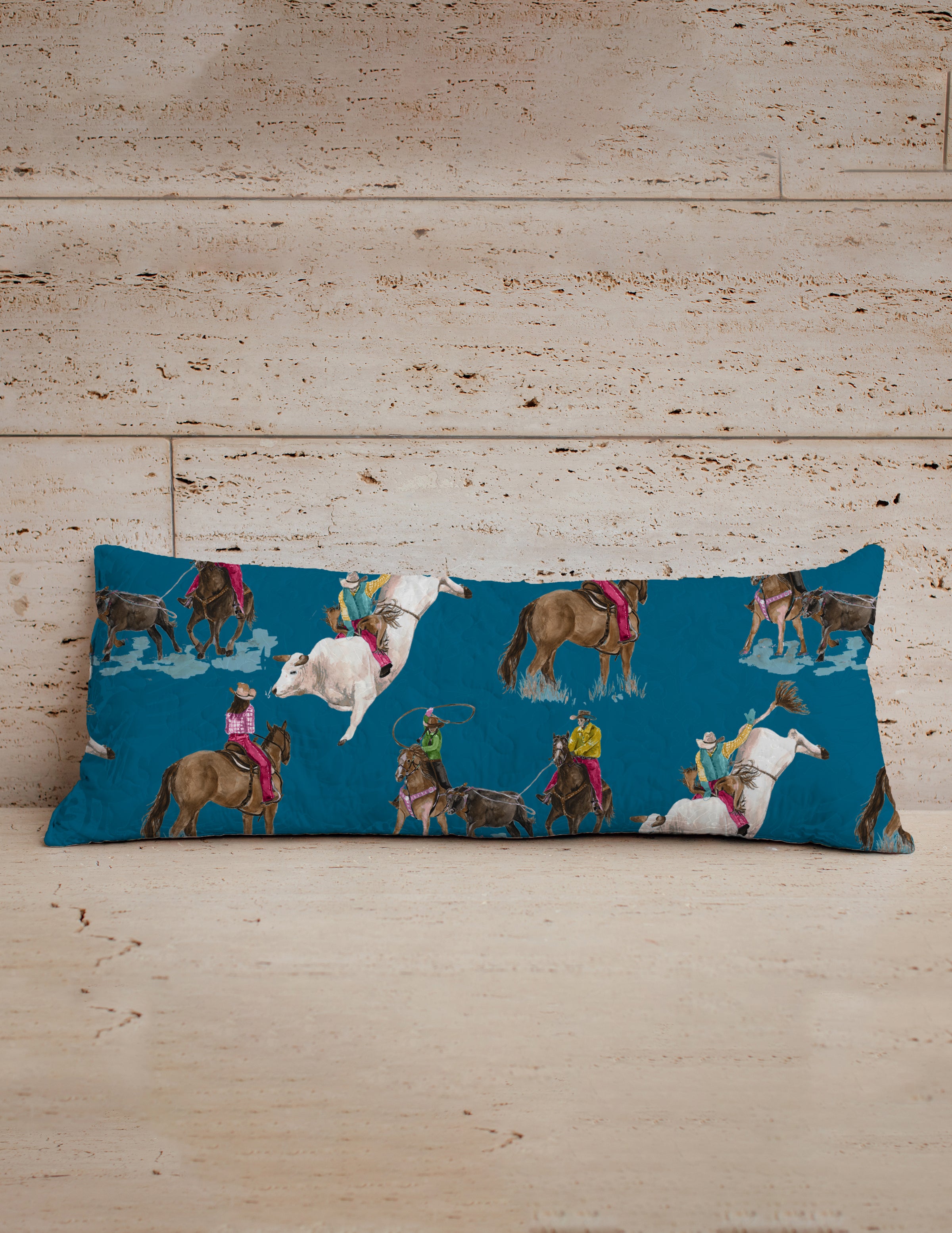 Roselynn Peacock Quilted Oblong 14" x33" Pillow