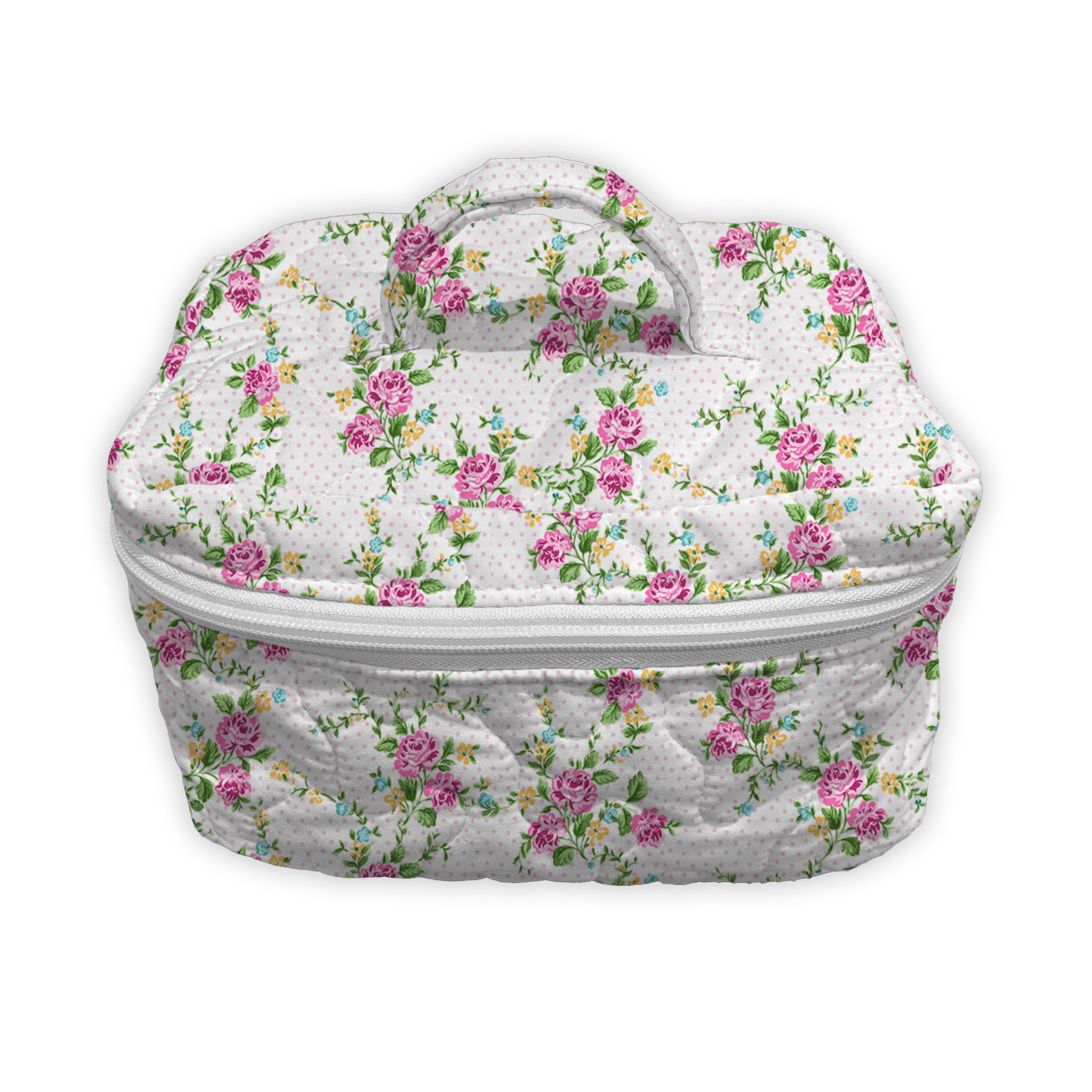 The Rosey Floral Jewels Quilted Travel Case is functionally and thoughtfully designed to keep your essentials organized on the go. This travel bag has a soft quilted exterior, a secure zip closure, and a convenient top handle, it’s ideal for storing makeup, toiletries, tech accessories, or anything you need within easy reach. Machine washable, too, so you don’t have to fuss none, just a little care, and it’ll last you for years.