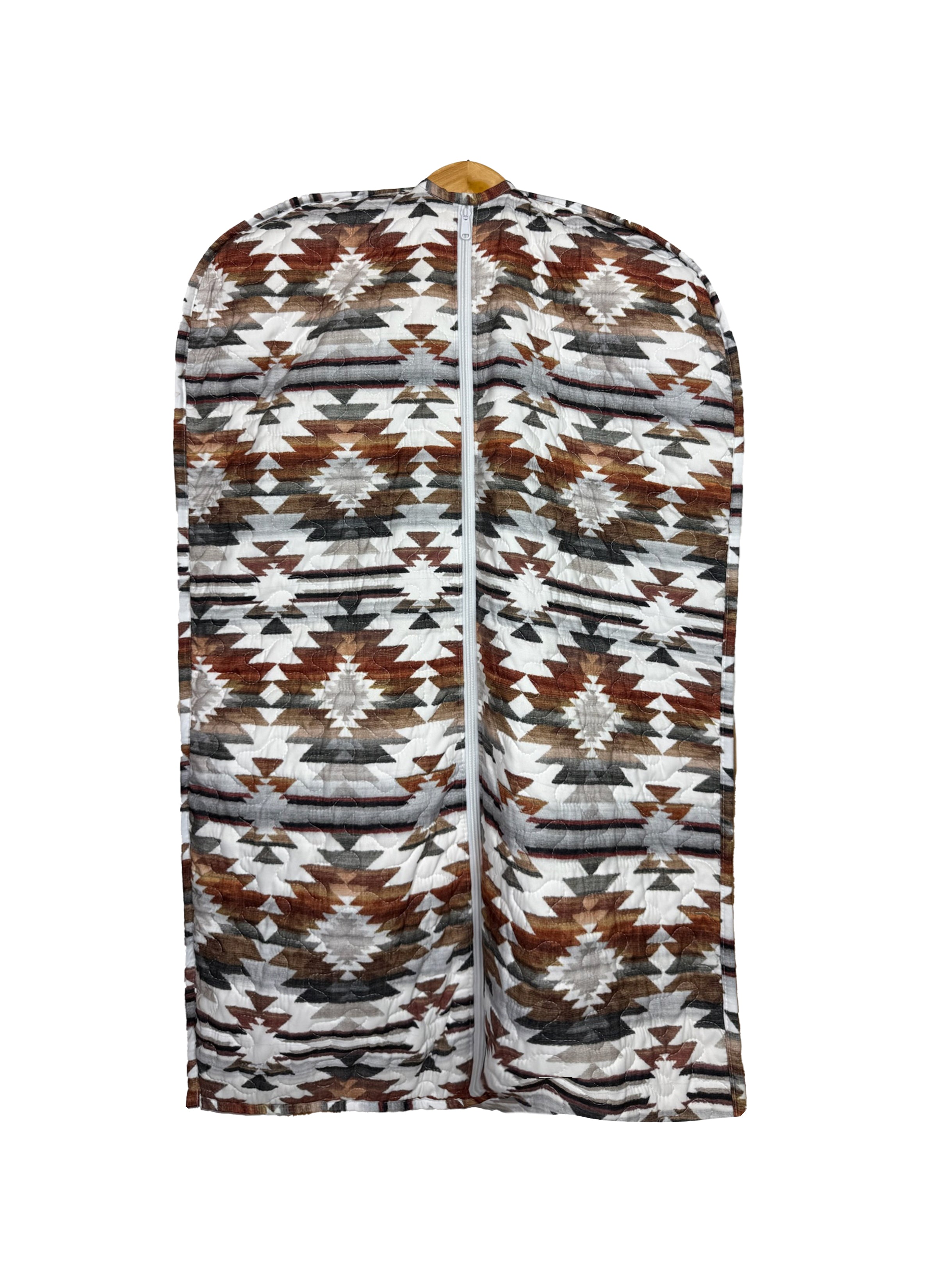 Revamp your daily wardrobe with our Quilted Garment Bag, where sophistication meets functionality. Expertly crafted to effortlessly organize your essentials, this garment bag combines classic quilting with contemporary flair. Its ample interior space ensures your garments stay neatly arranged on the move, while a selection of rich colors and chic patterns complements any wardrobe. Whether you're traveling to the city or countryside, this versatile garment bag is your ultimate companion. Handcrafted in Texas with artisanal care and durable materials, it promises enduring quality and timeless style.