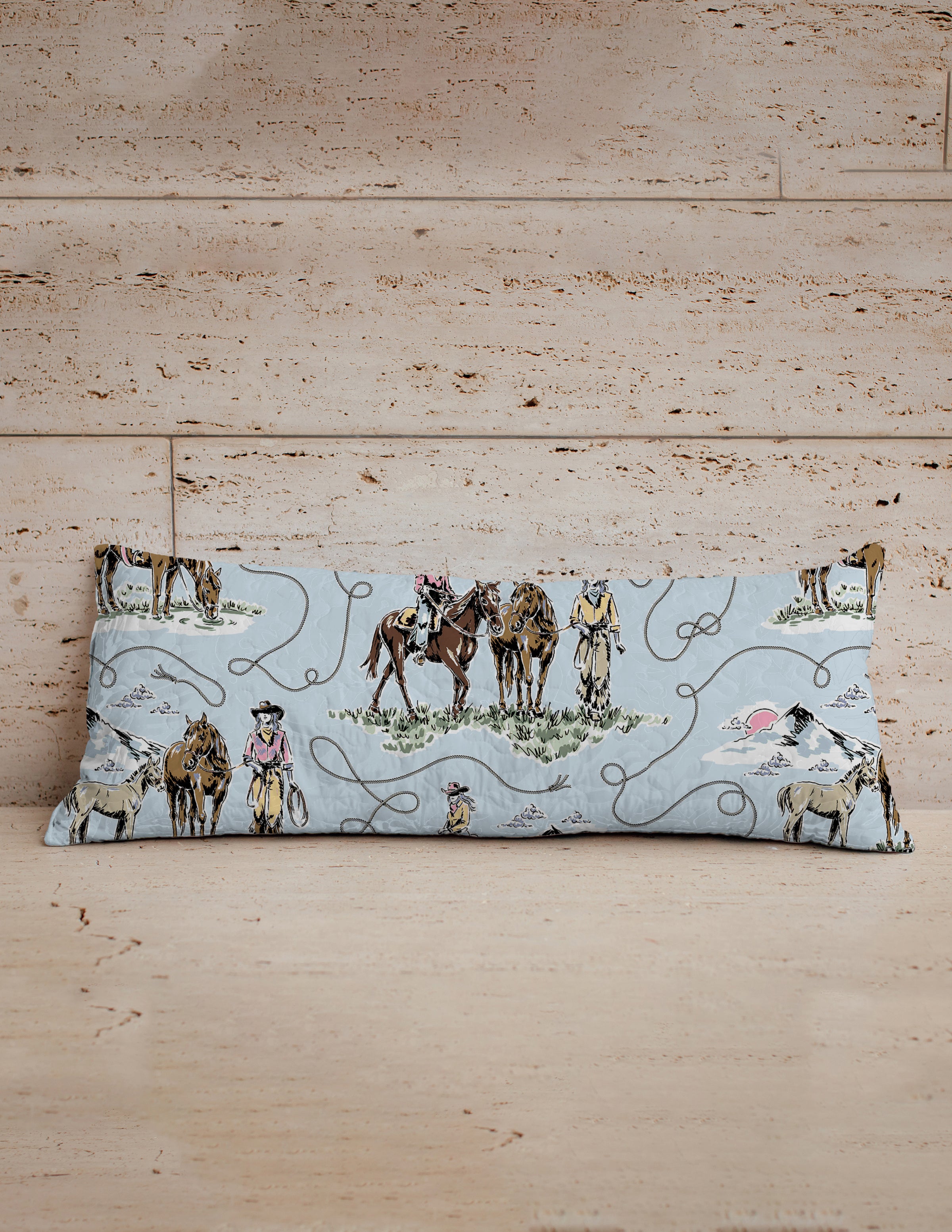 Sierra Cowgirl Blue Quilted Oblong 14" x33" Pillow