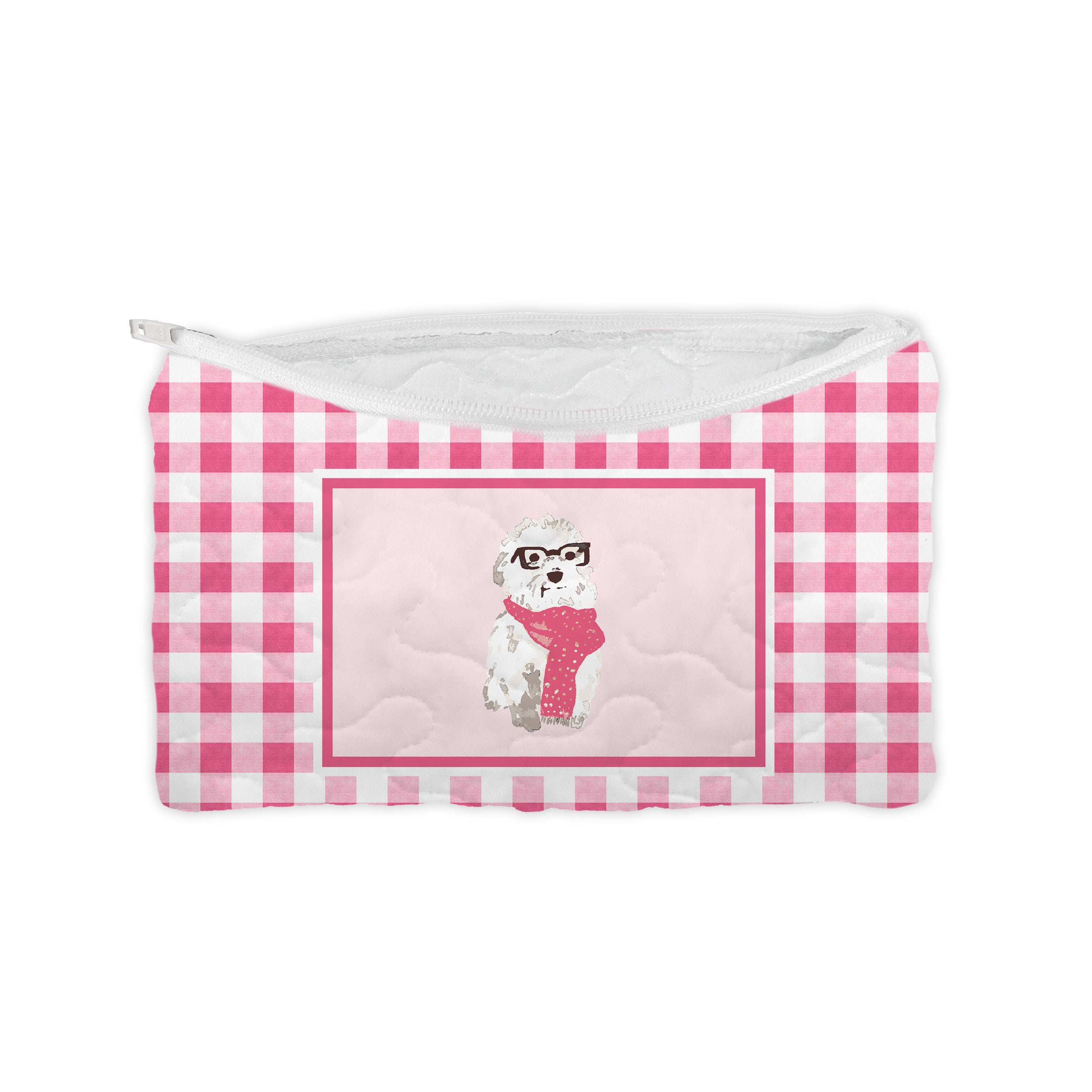 Framed Sweater Pups Pink Quilted Makeup Bag