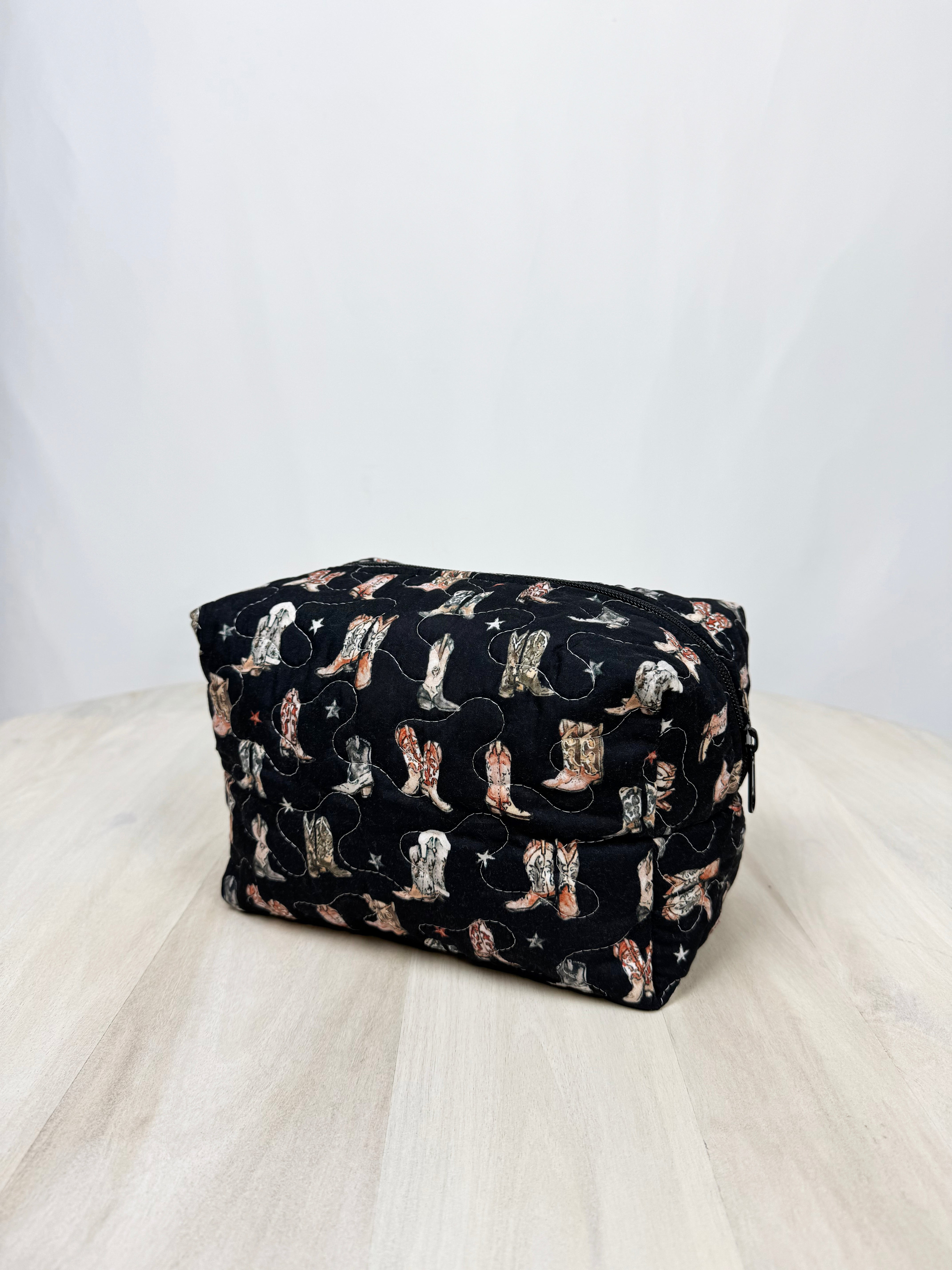 Elevate your beauty routine with our Quilted Makeup Bag, where style meets functionality. Crafted to organize your essentials with ease, this bag combines classic quilting with contemporary flair. Its spacious compartments ensure everything stays neatly in place, while a selection of elegant colors and chic patterns enhances its appeal. Whether at home or on the go, this versatile makeup bag is your perfect companion. Handcrafted in Texas with meticulous care and durable materials, it promises lasting quality and timeless sophistication for your cosmetic essentials.