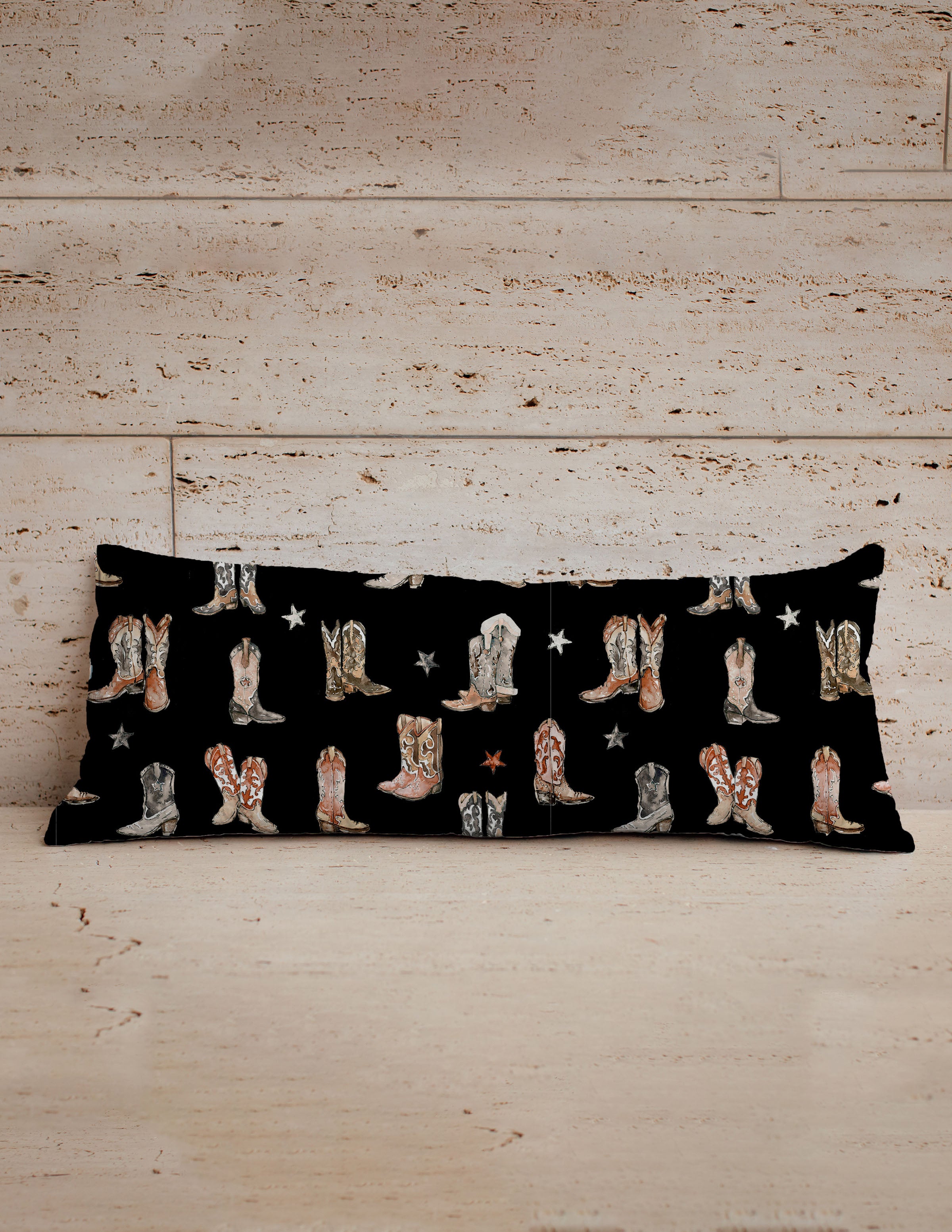 Thunderbird Boots Black Quilted Oblong 14" x33" Pillow