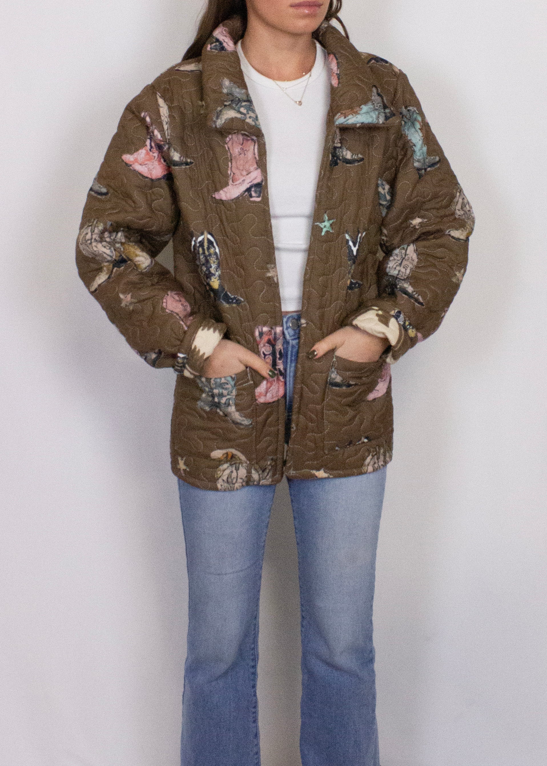 Our Quilted jackets are Comfy and cute! They pair just as well with a dress as it does with jeans or a pair of shorts.
