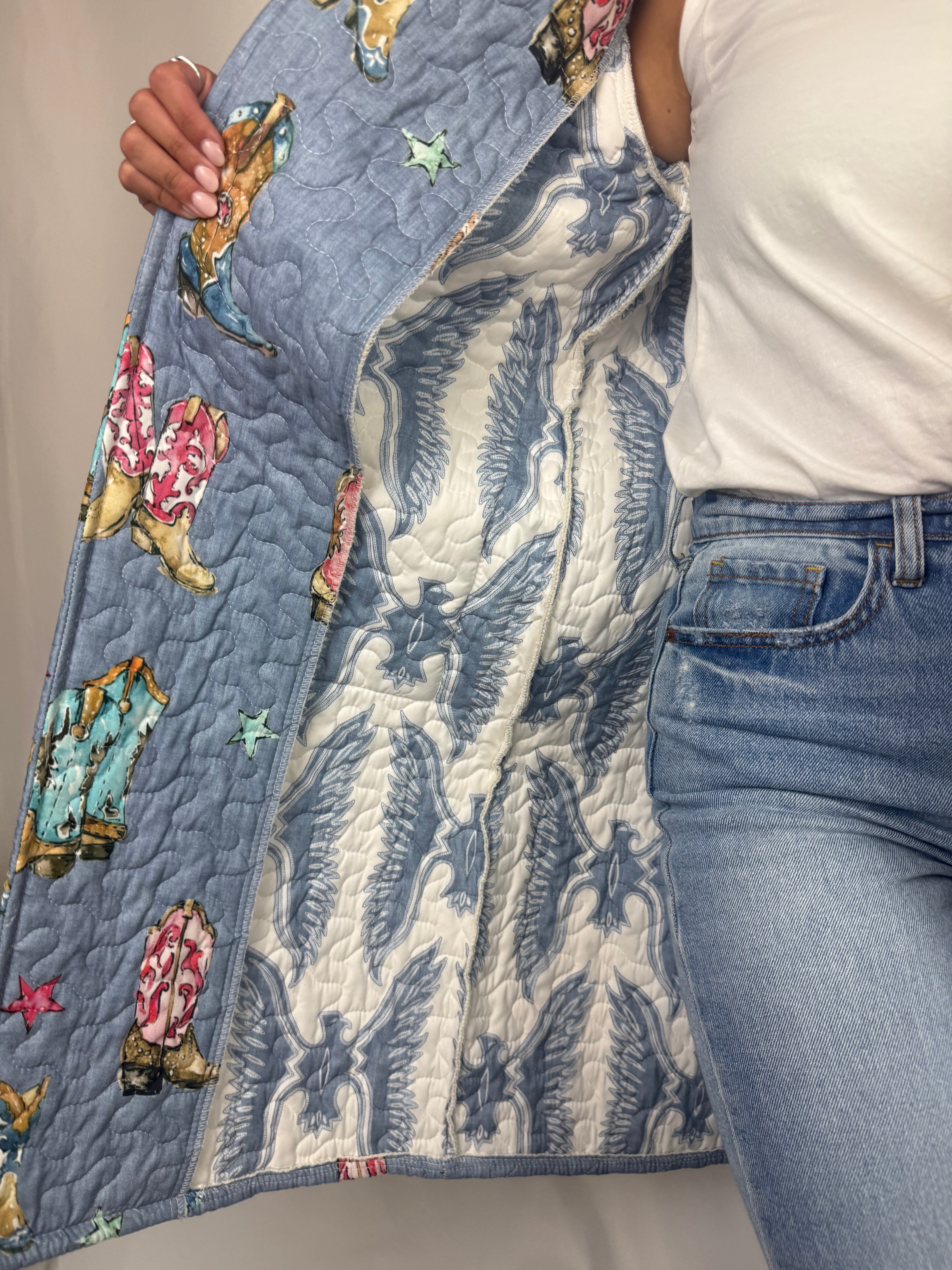 Thunderbird Boots Chambray Quilted Duster