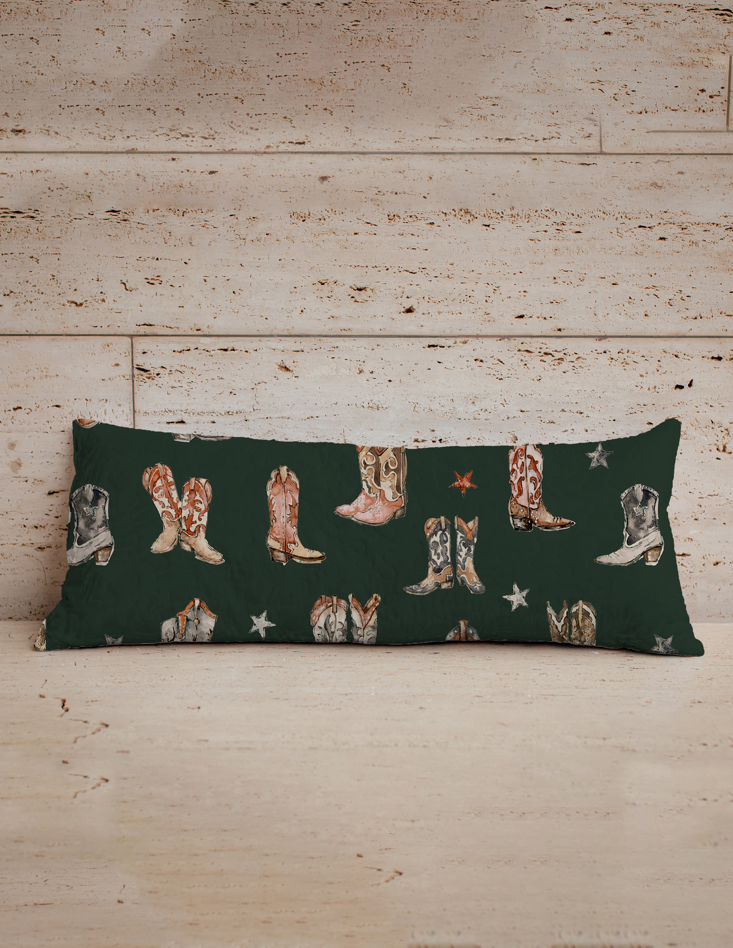 Thunderbird Boots Emerald Quilted Oblong 14" x33" Pillow
