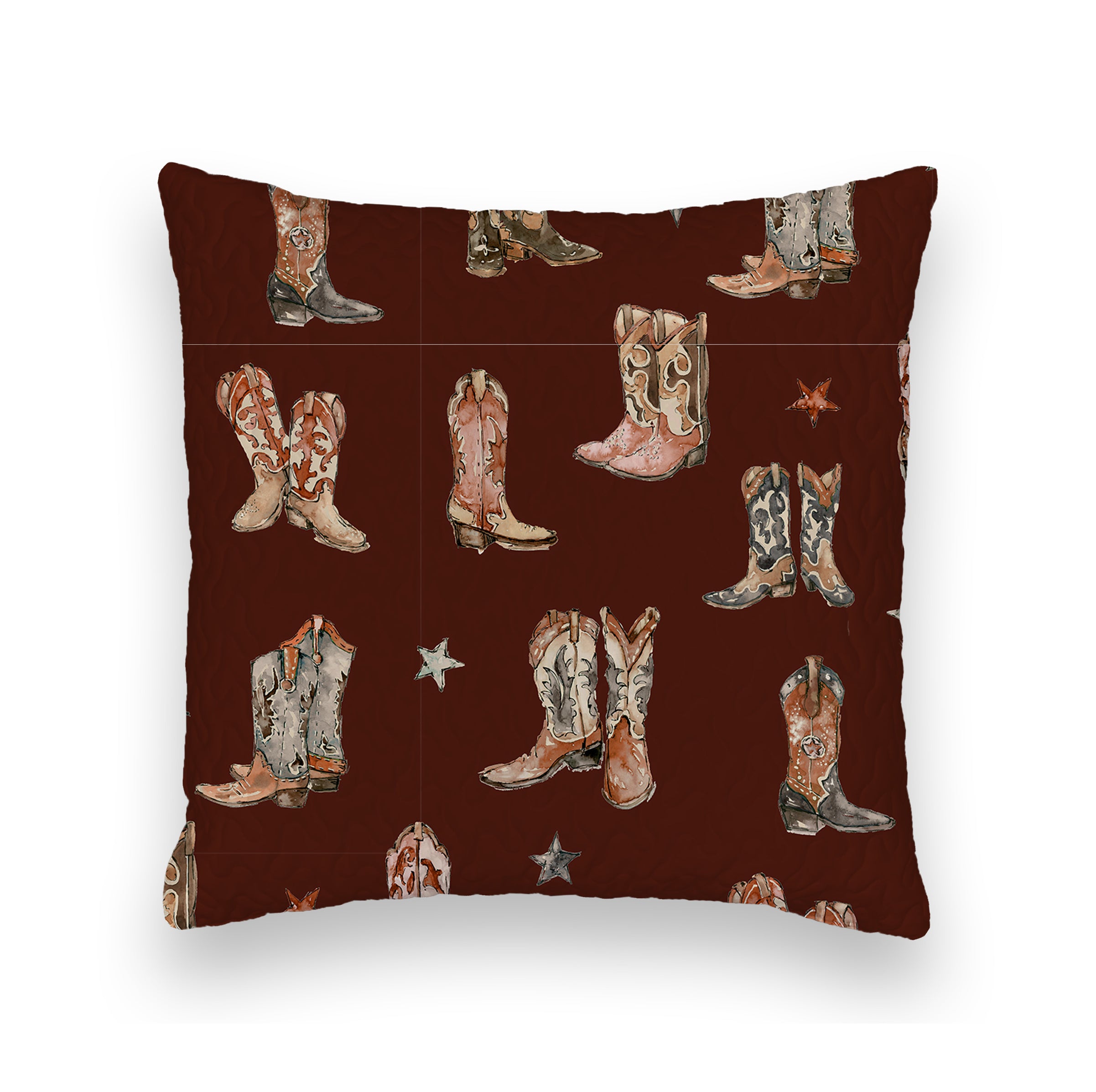 Thunderbird Boots Maroon Quilted 20" Pillow