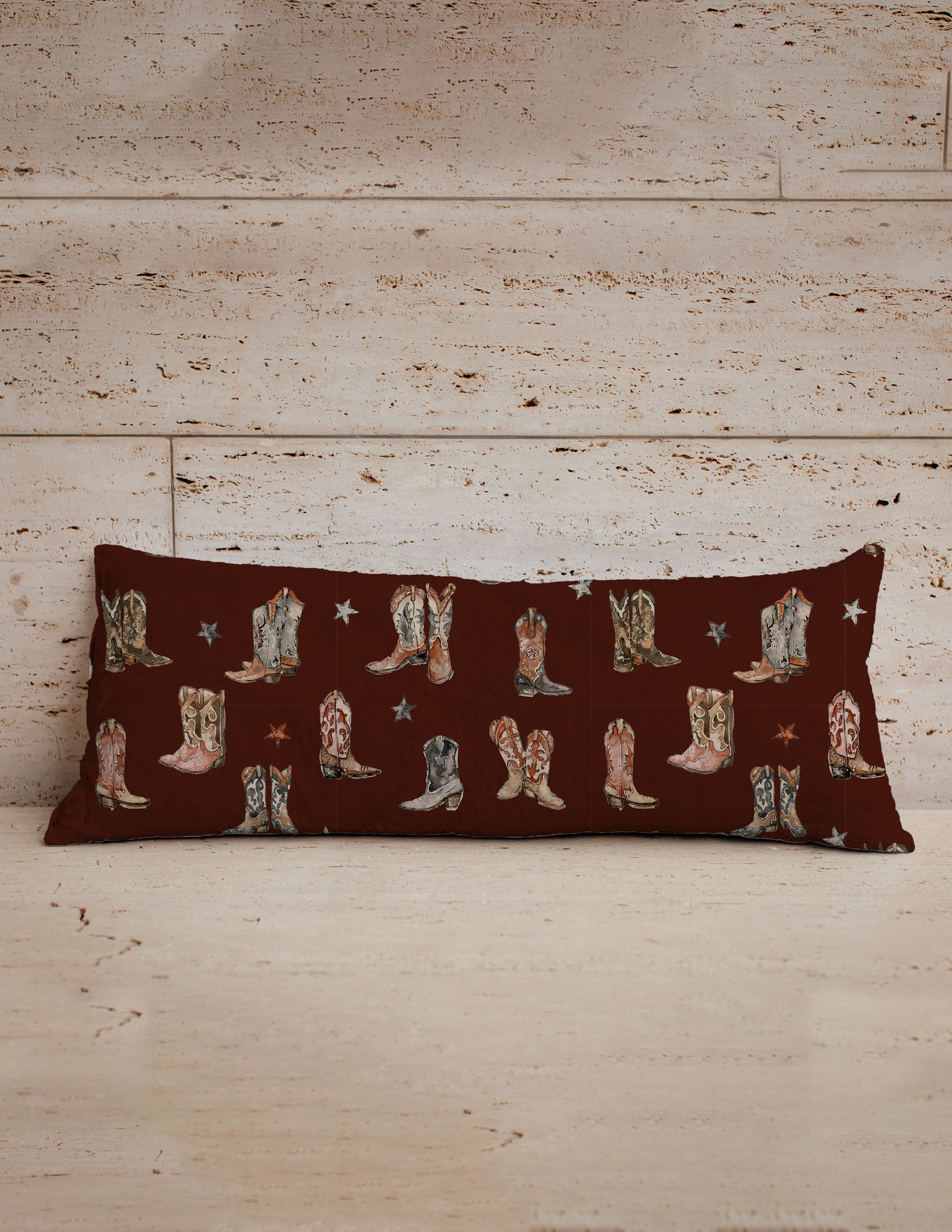 Thunderbird Boots Maroon Quilted Oblong 14" x33" Pillow