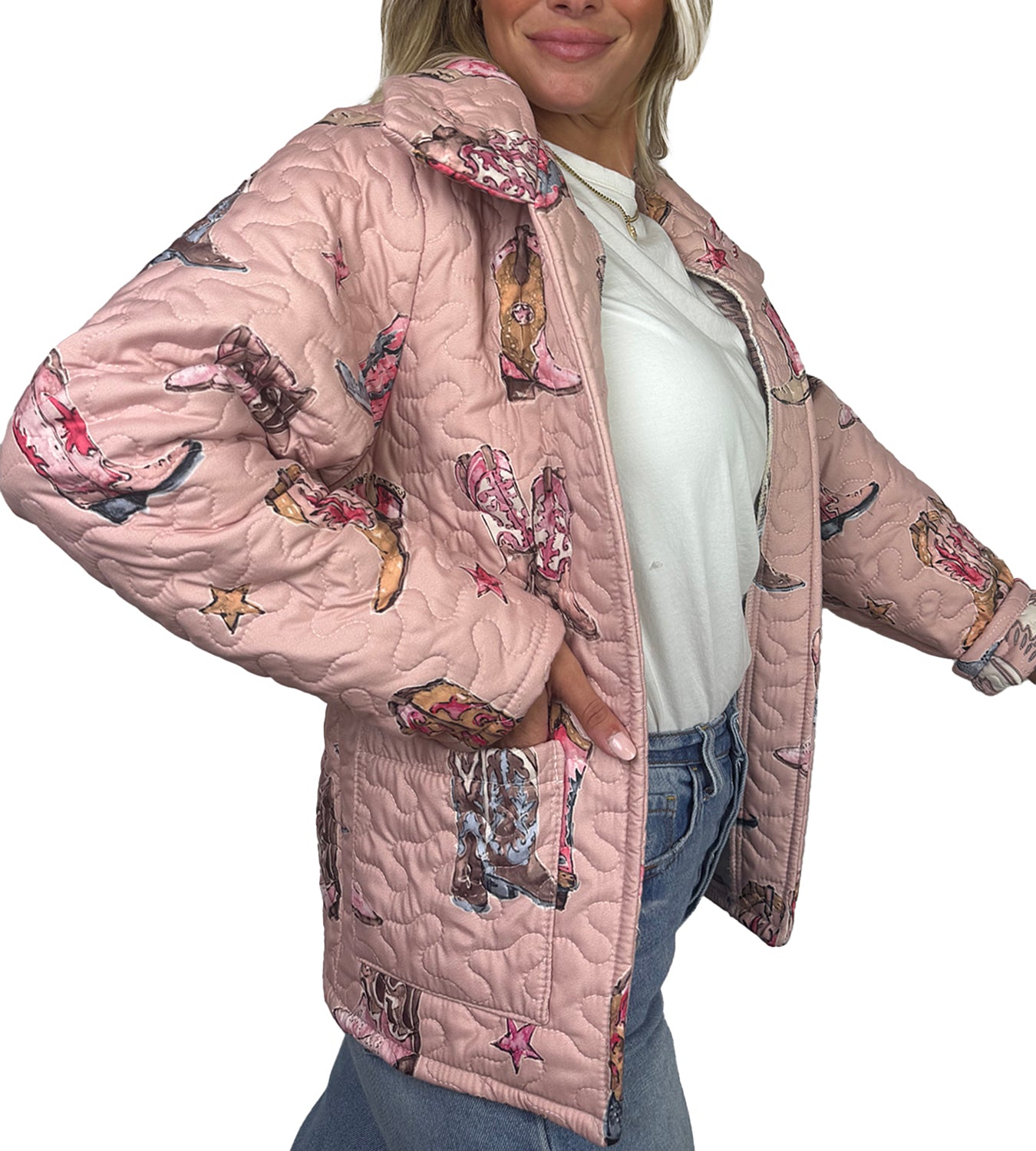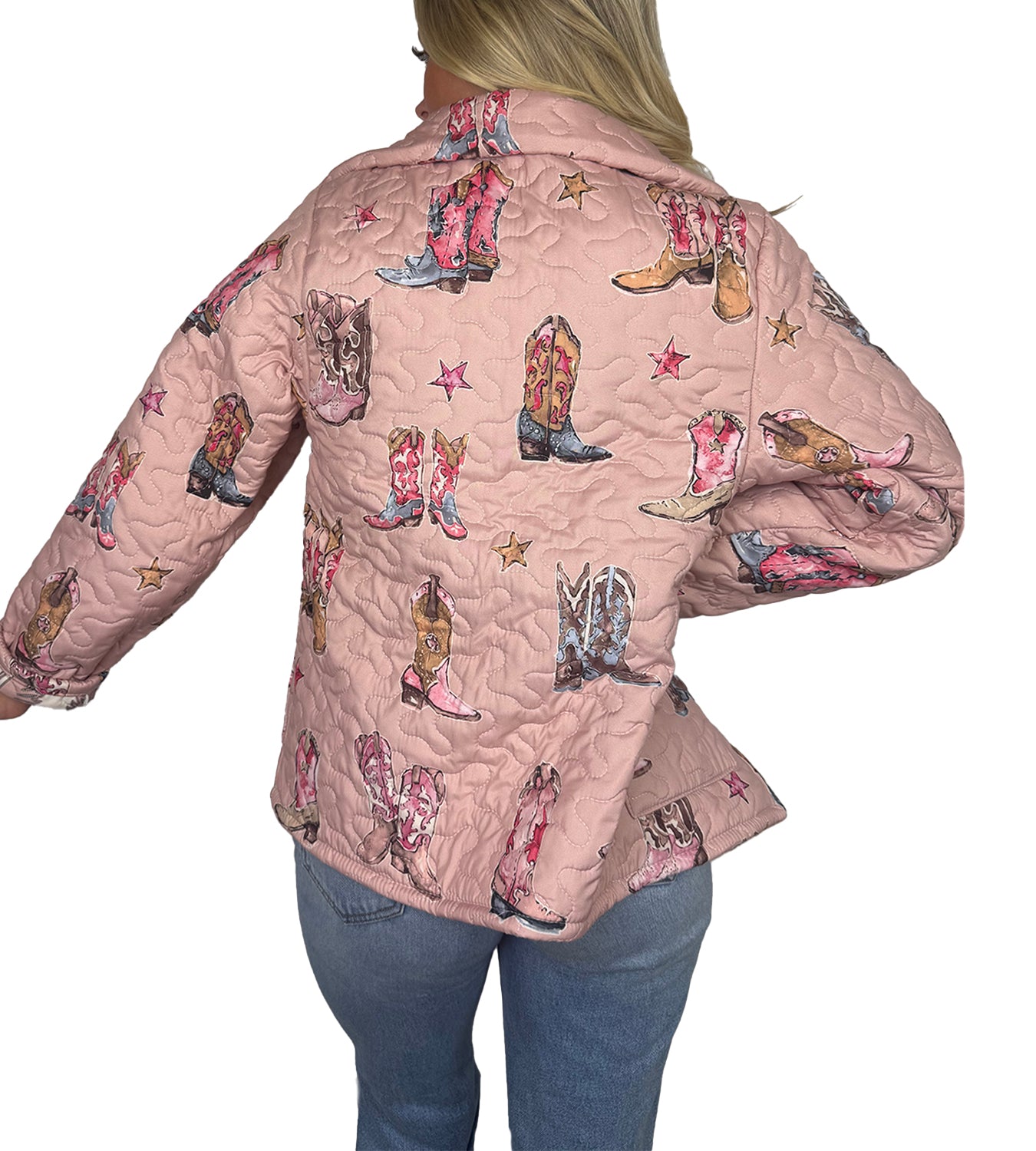 Our Quilted jackets are Comfy and cute! They pair just as well with a dress as it does with jeans or a pair of shorts. The perfect touch to a trendy western outfit!