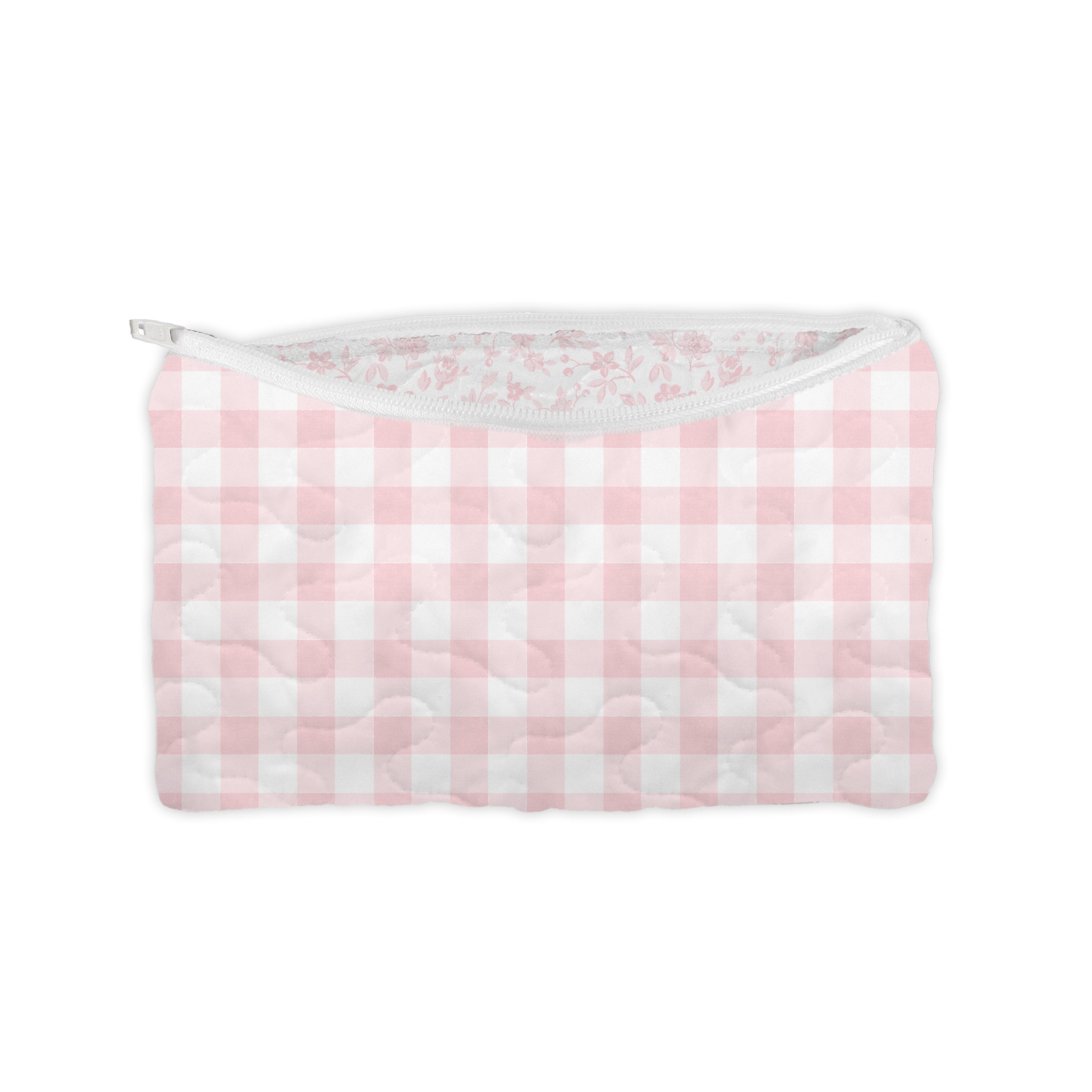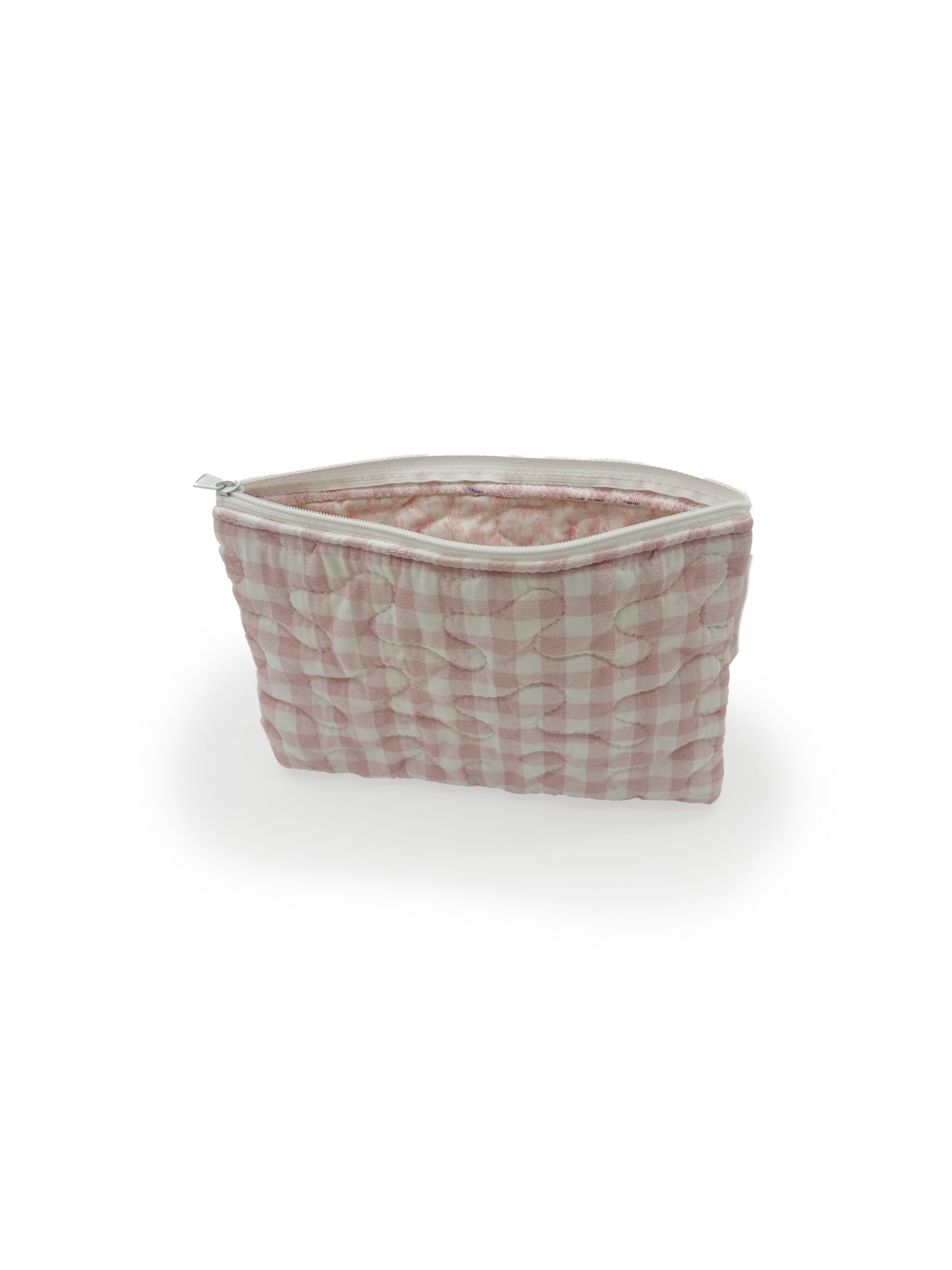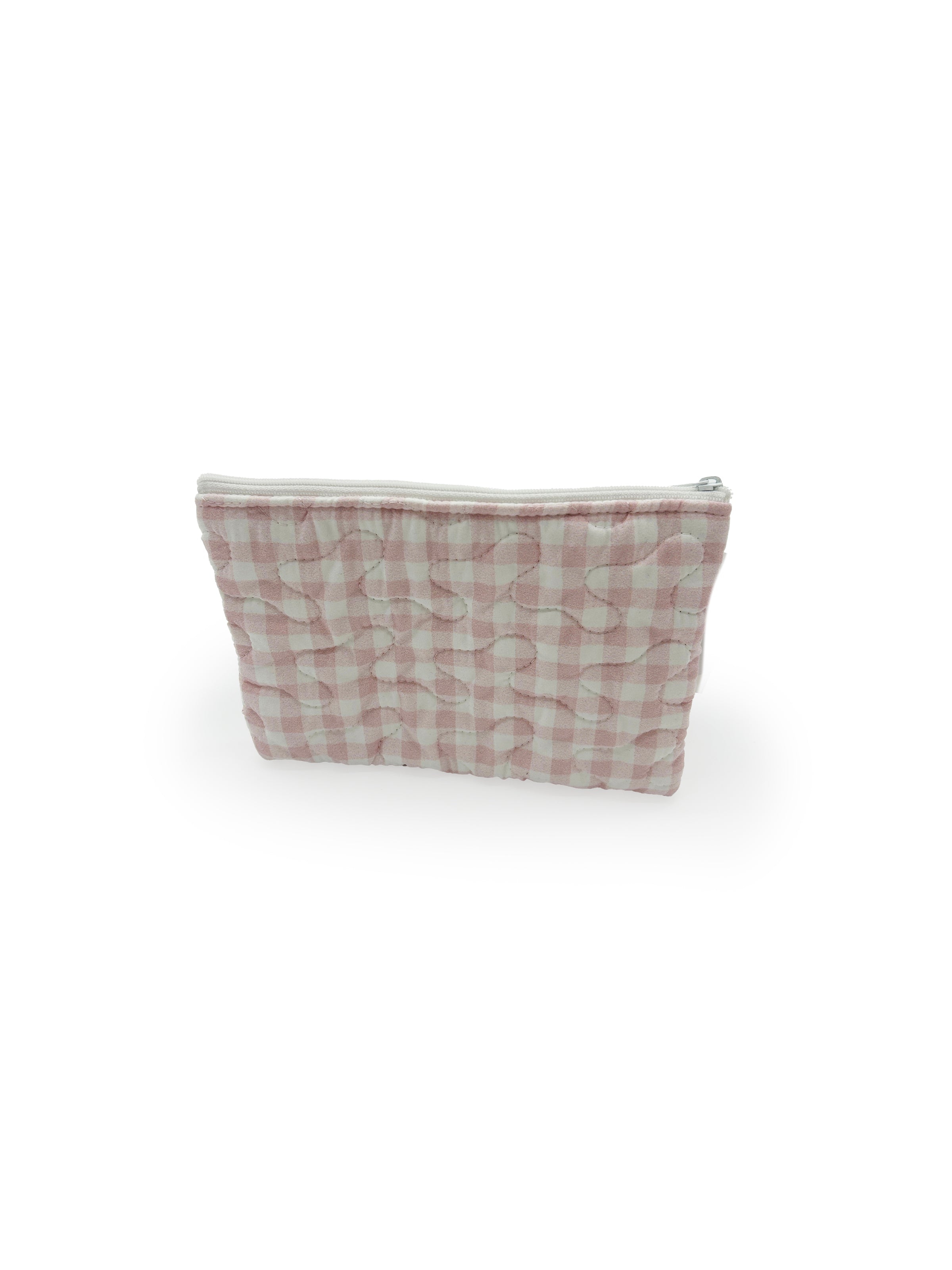 Anthia Gingham Pink Quilted Makeup Bag