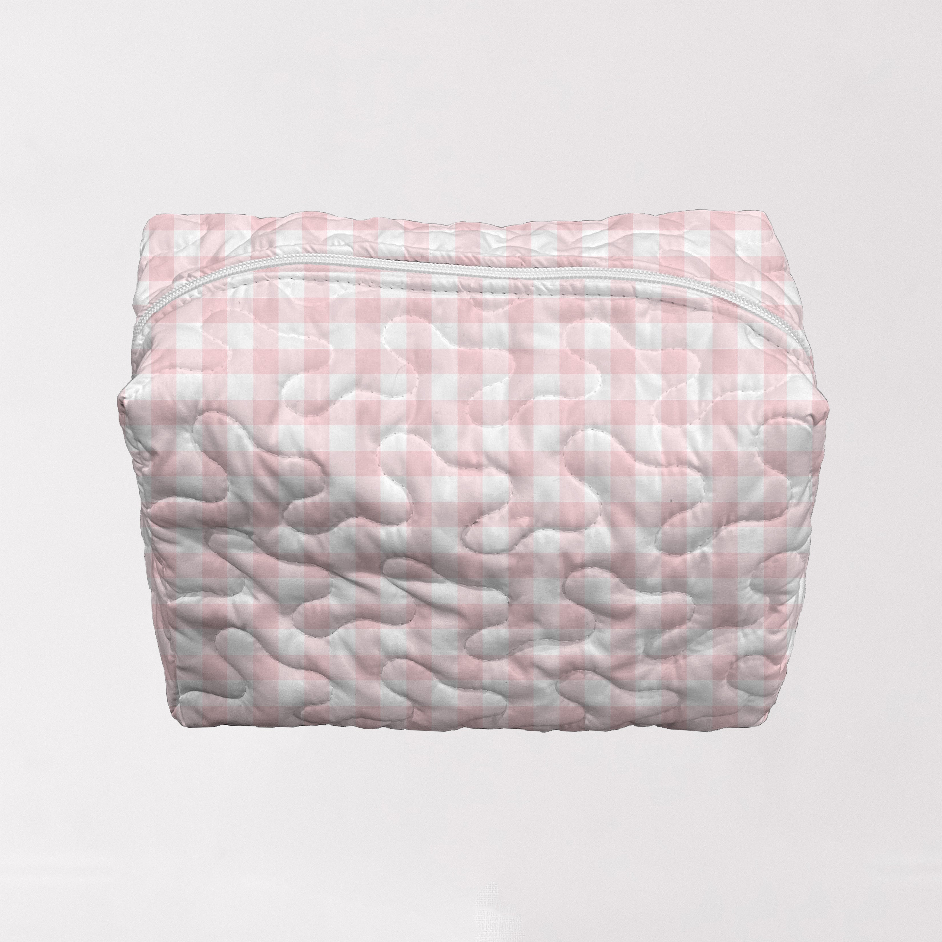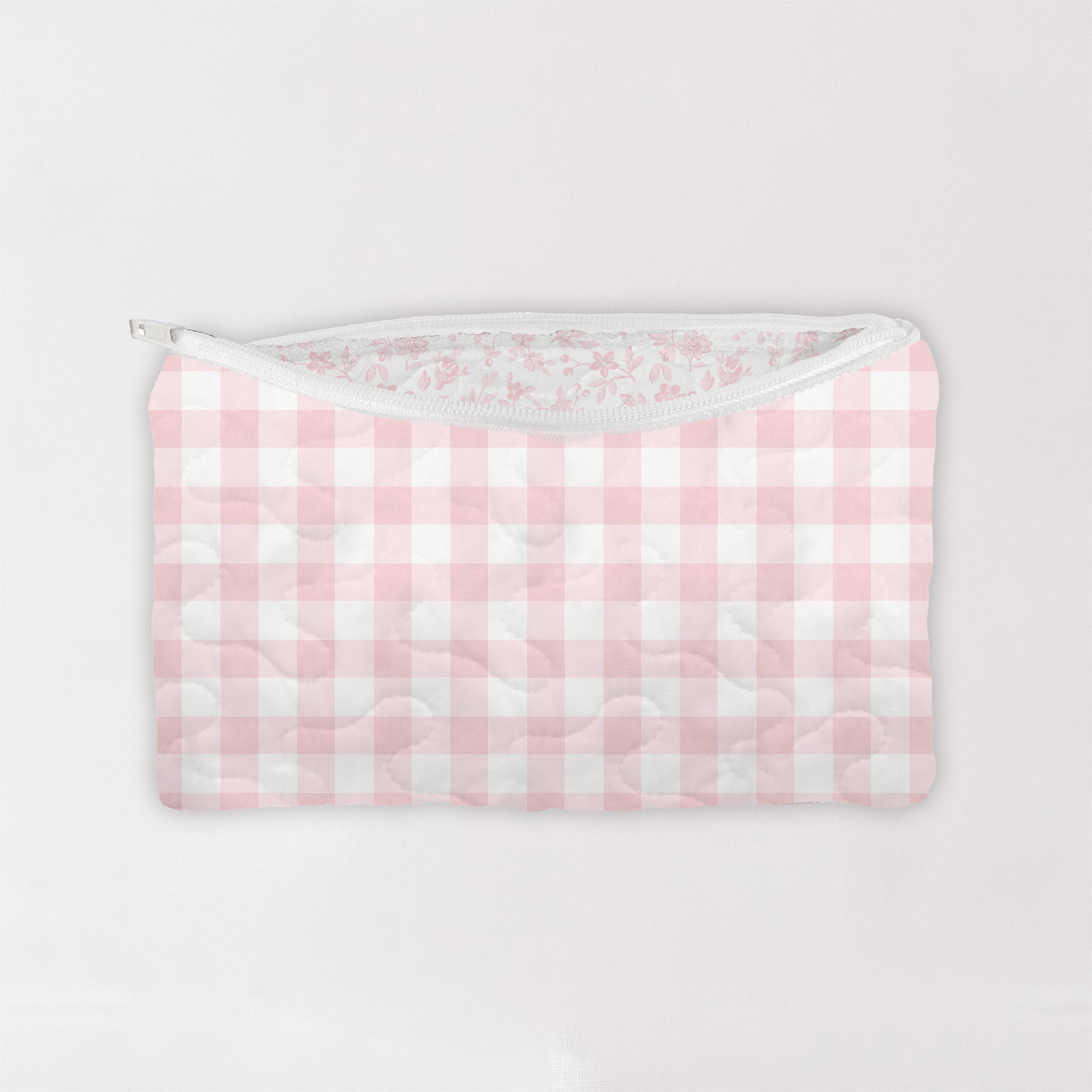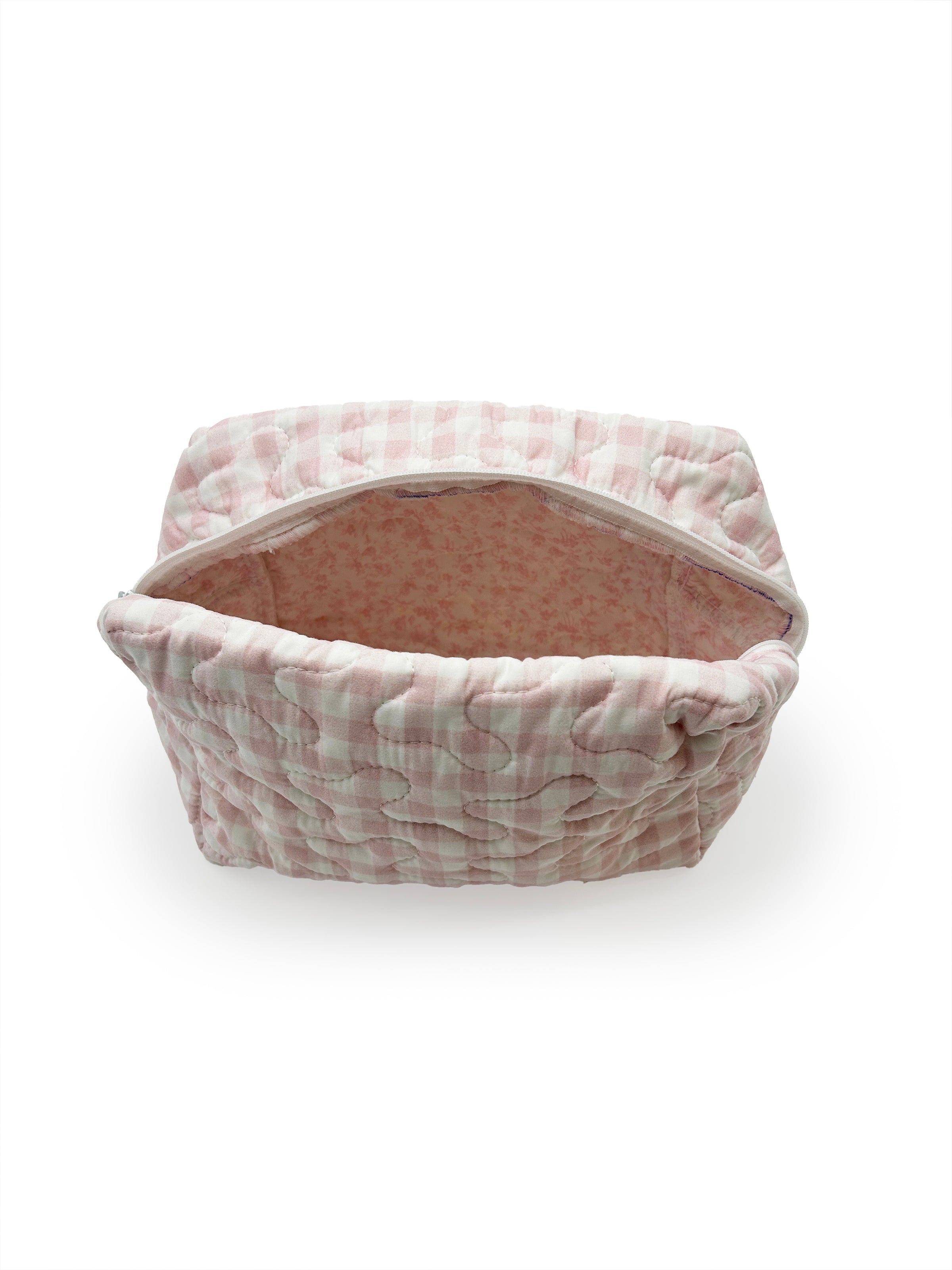 Anthia Gingham Pink Quilted Makeup Bag