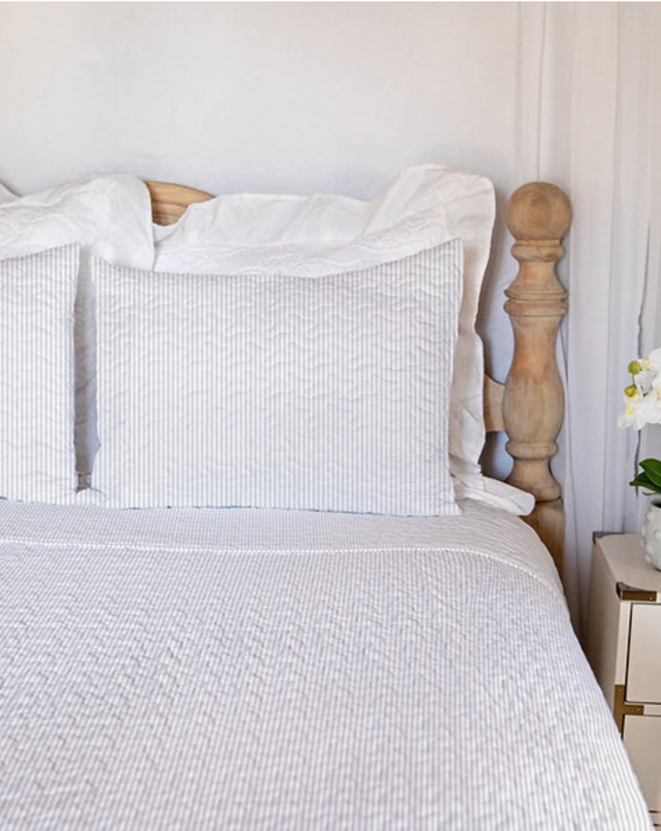 Ticking Stripe Grey Quilt