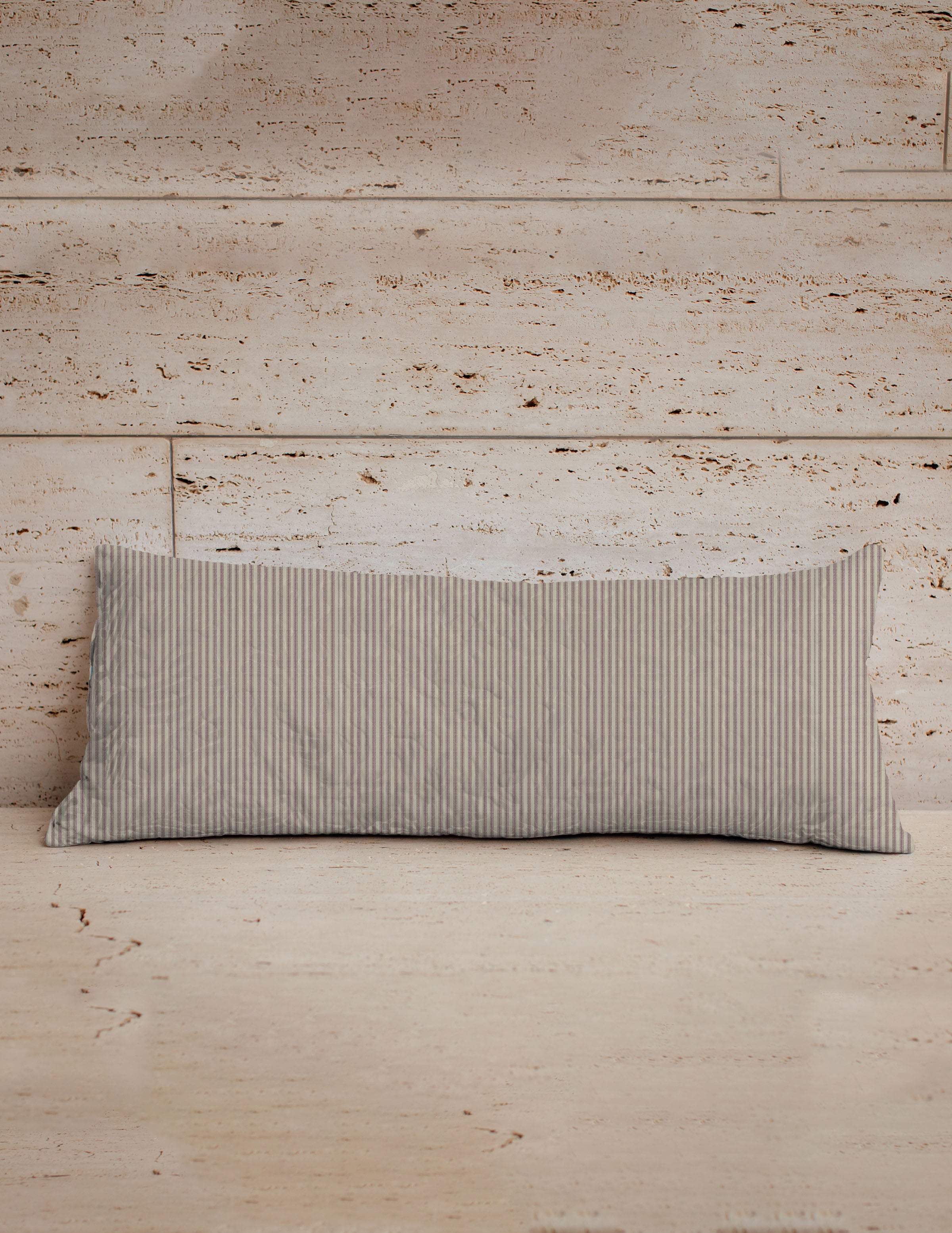 Ticking Stripe Linen / Purple Quilted Oblong 14" x33" Pillow