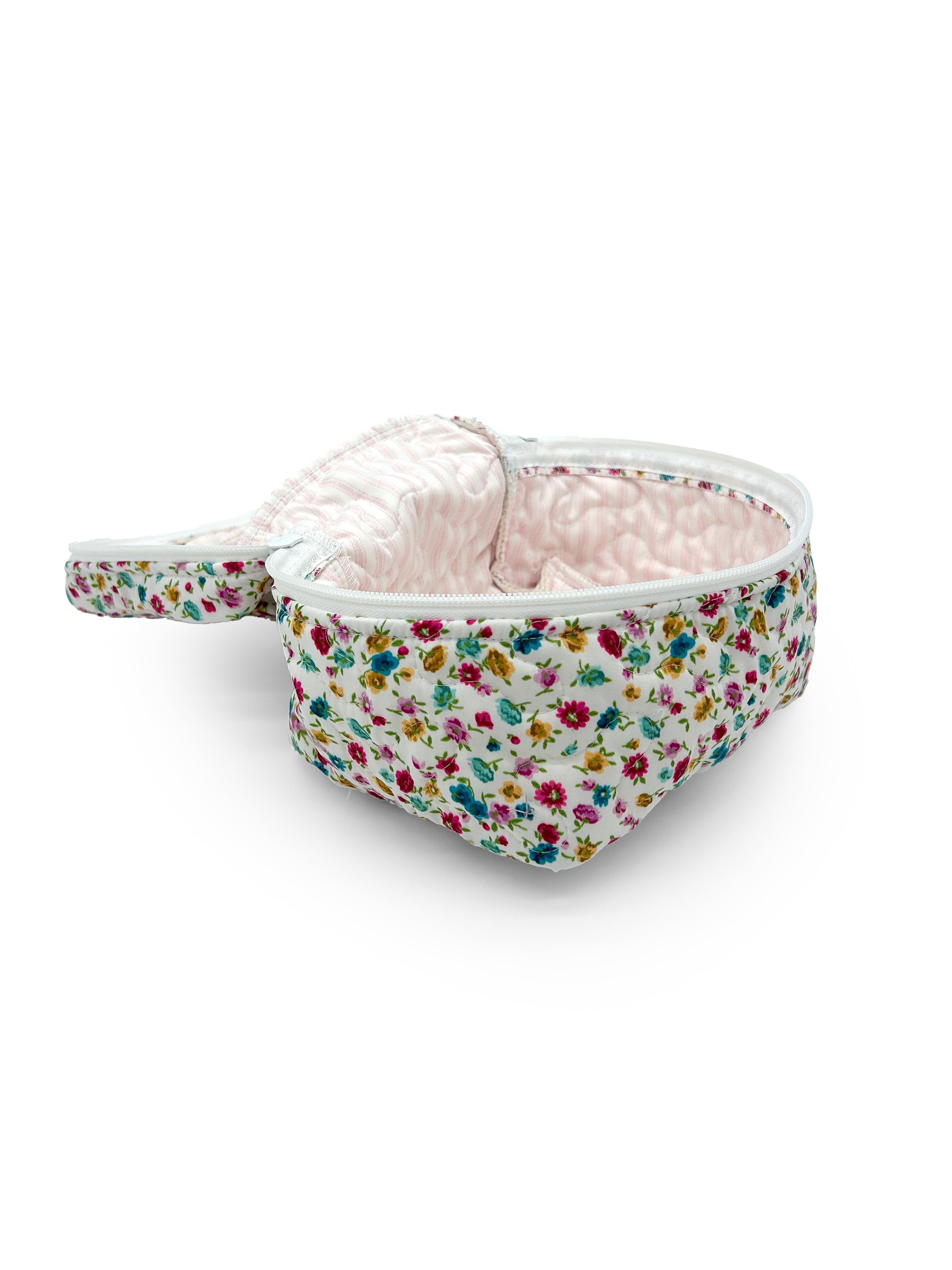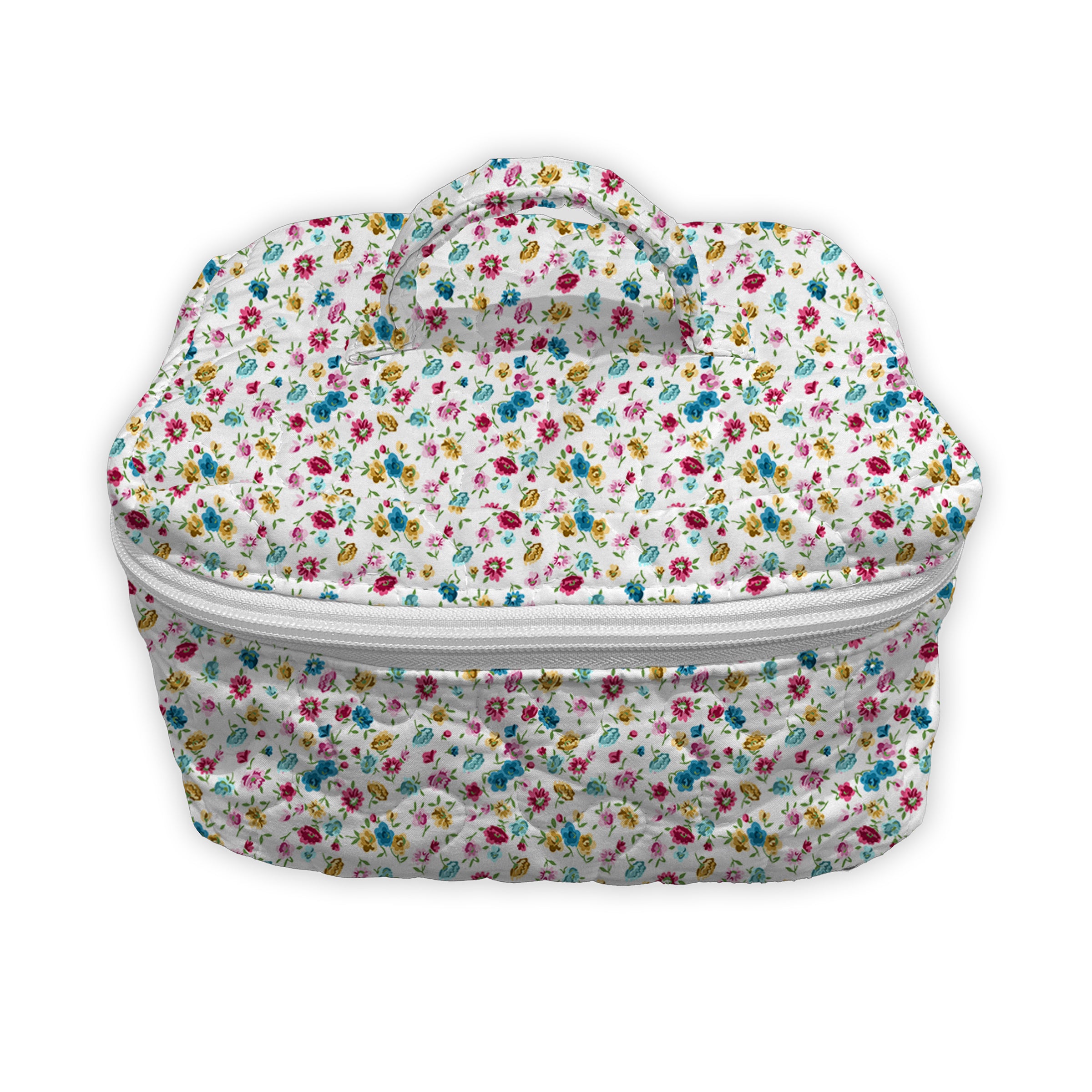 The Tricia Floral Jewels Quilted Travel Case is functionally and thoughtfully designed to keep your essentials organized on the go. This travel bag has a soft quilted exterior, a secure zip closure, and a convenient top handle, it’s ideal for storing makeup, toiletries, tech accessories, or anything you need within easy reach. Machine washable, too, so you don’t have to fuss none, just a little care, and it’ll last you for years.