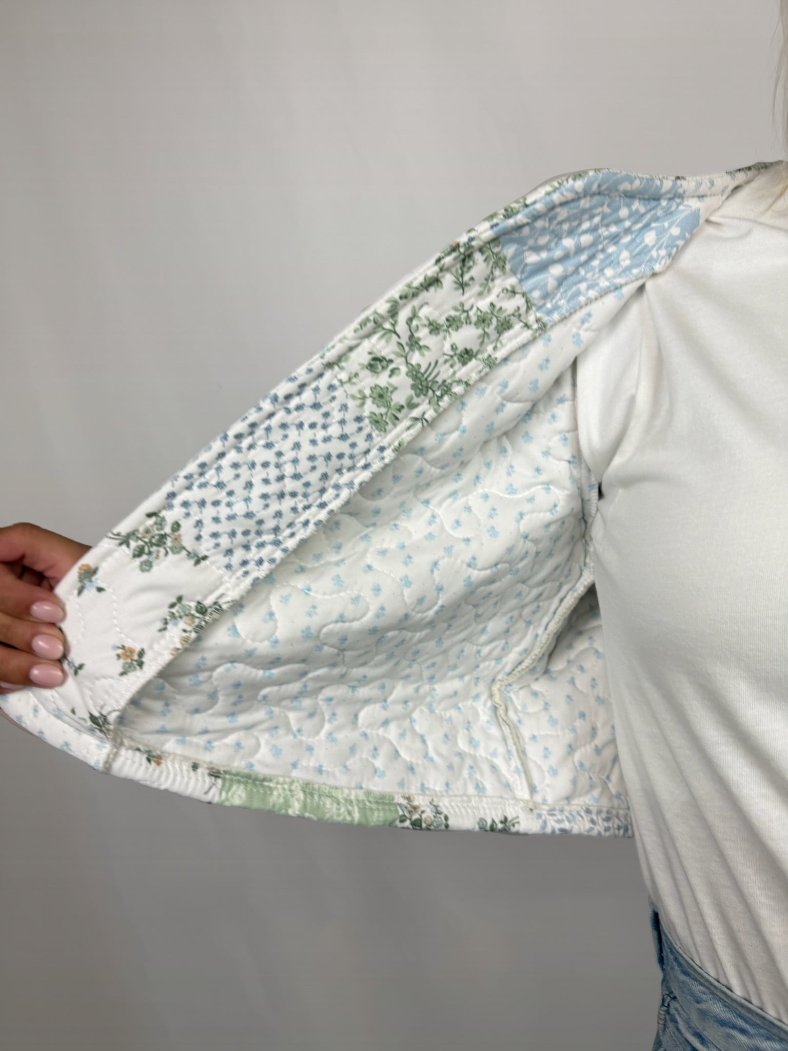 Waverly Patchwork Blue Cropped Quilted Jacket