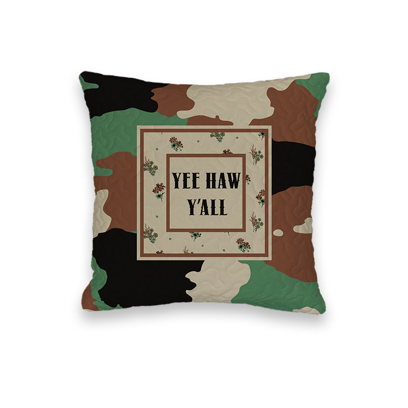 "Yee Haw Y'all" Camo Quilted Mini Pillow 8" x 8"